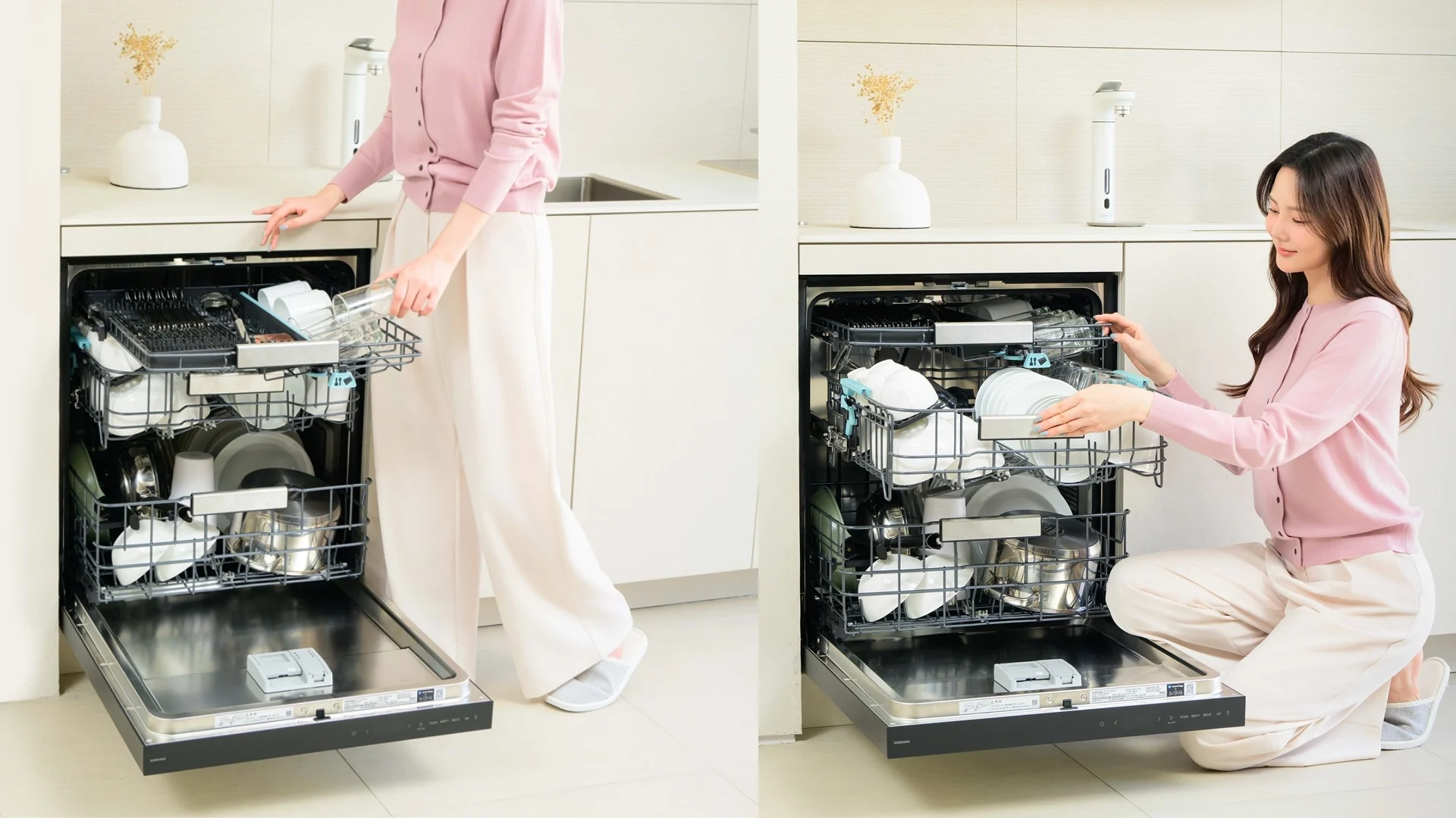 Внутренняя конструкция посудомоечной машины была усовершенствована. Верхняя полка оснащена вращающейся насадкой для мытья чашек изнутри, а также направляющими, которые облегчают её открытие и закрытие даже при полной загрузке. Нижняя полка имеет держатель для сковородок, который можно сложить для экономии пространства. На дверце устройства расположен дисплей, отображающий информацию о процессе работы, а в некоторых моделях предусмотрена функция проекции данных на пол.