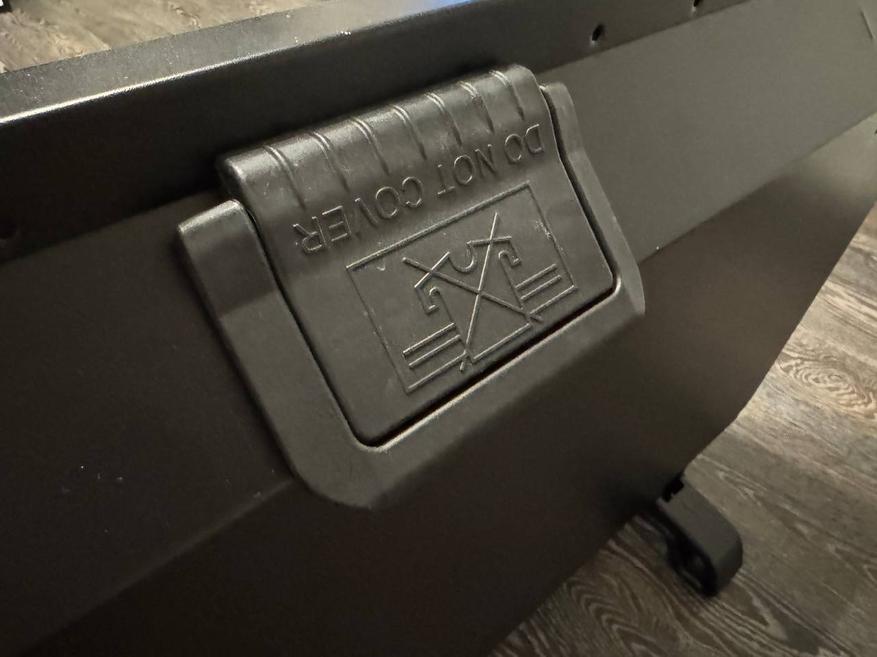 Сам конвектор выглядит стильно и минималистично. На лицевой стороне видим корпус в черной матовой порошковой краске — она приятно ощущается, хорошо выдерживает нагрев и перепады температур. Снизу слева небольшой логотип бренда. В верхней части расположена решётка для выхода тёплого воздуха. Сверху сзади расположена выдвигающаяся ручка для переноски, очень удобная вещь, особенно если приходится таскать прибор по комнатам или этажам. Весит конвектор без малого 9 кг. В основе устройства лежит X-образный алюминиевый нагревательный элемент, который очень быстро набирает температуру без треска и шума, несильно сушит воздух и не сжигает пыль.