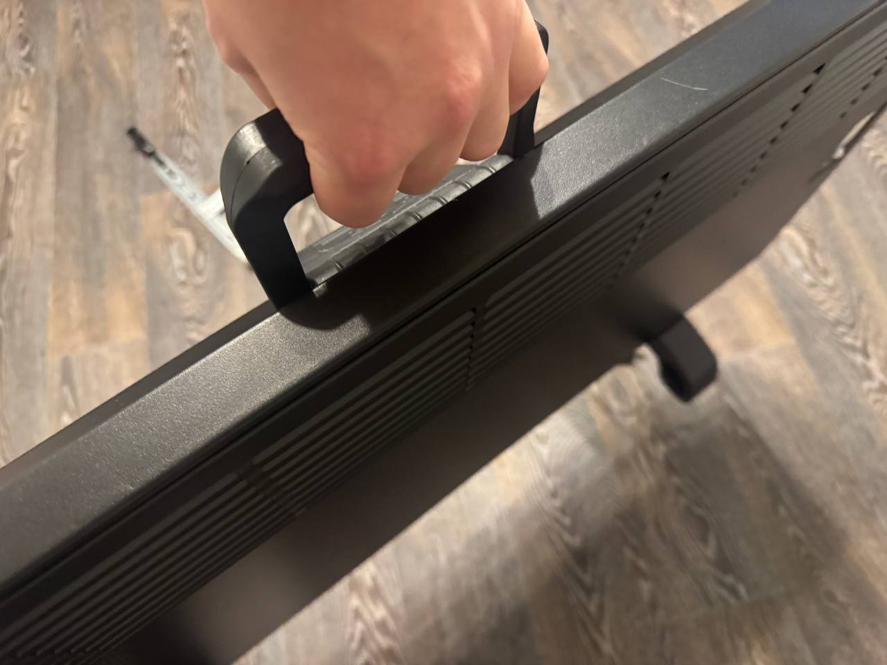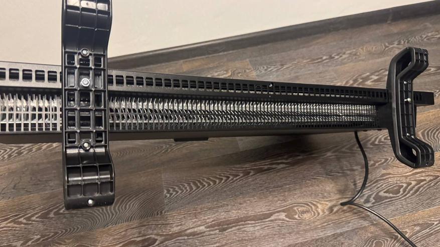 Сборка не вызывает никаких сложностей — ножки легко вставляются в пазы и хорошо держаться. Для дополнительной уверенности их можно прикрутить к корпусу шурупом, который уже вставлен в саму ножку. При этом он не мешает, если вы решите поставить конвектор не прикручивая ножки. В корпусе именно в месте крепления ножки имеется отверстие для закручивания шурупа. Ножки легко снять, просто нажав на пластиковый зажим. Далее конвектор можно установить на кронштейн, который также имеет быстросъемные подпружиненные зацепы. Как говорится, -«Simply Clever».