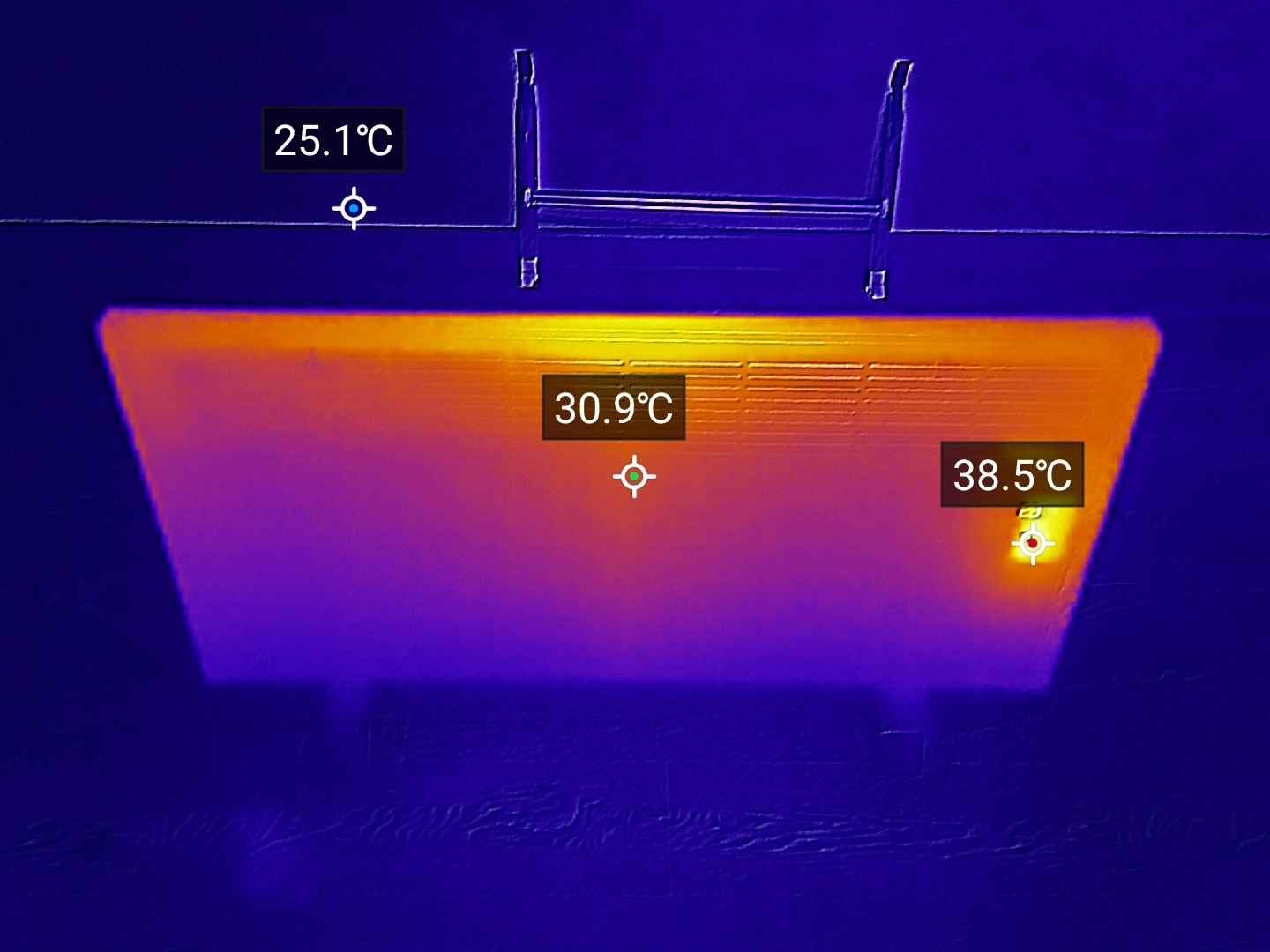 Сзади корпус полностью плоский с покатым скосом к верхней части, где присутствует два небольших «прореза» под зацеп настенного кронштейна. Снизу слева выходит кабель питания на 1,3 метра. Он имеет большое сечение, а на вилке есть заземление.