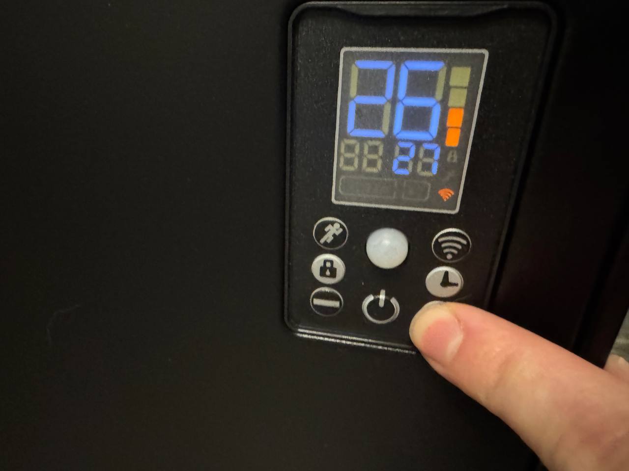 Для включения необходимо установить выключатель на правом боку конвектора в положение «1». После нажать и удерживать кнопку включения на основной панели. Далее на дисплее появится температура и шкала из четырех оранжевых отметок, которая показывает мощность нагрева. Если температура в помещении соответствует заданной на дисплее, то устройство будет поддерживать ее при минимальных затратах энергии. При необходимости «поднять градус», включится на полную мощность пока не достигнет нужных значений.
