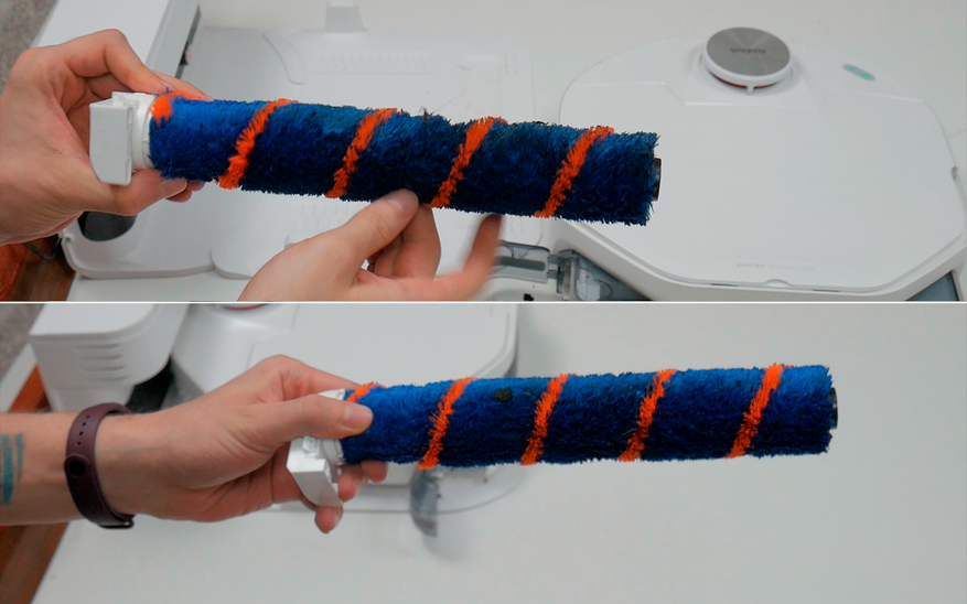 Робот выполаскивает валик каждый раз после парковки. Результаты средние: при регулярной уборке самоочистки вполне достаточно на несколько дней, но после серьезной работы промывать валик придётся в раковине.