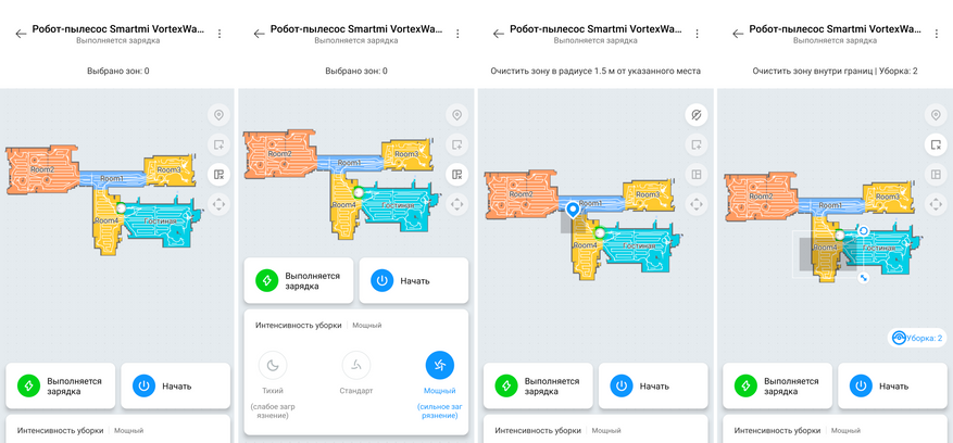 Приложение стандартное, есть все функции для детальной настройки уборки. Единственное, к чему можно придраться, – нет особых параметров для каждой комнаты.