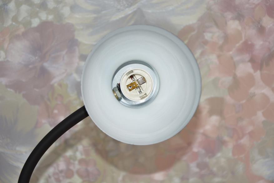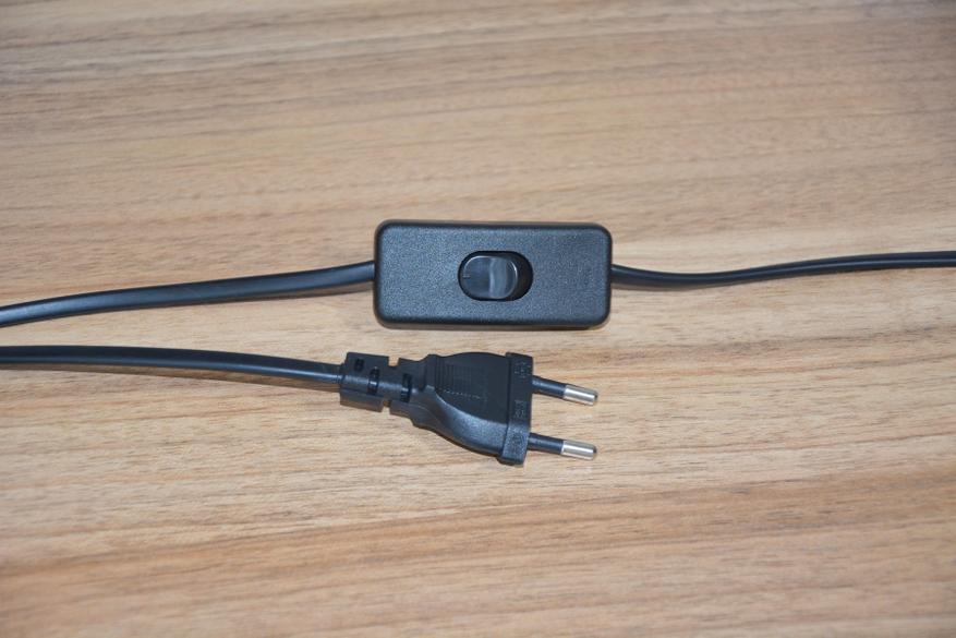 На опоре кнопки включения нет, лампа включается кнопкой на сетевом шнуре сечением 0,5 мм2, чего вполне хватит для ламп мощностью 40 Вт. Кнопка рассчитана на напряжение 250 Вольт и ток 2 Ампера. Длина сетевого шнура составляет 1,5 метра, чего в большинстве случаев стандартная длина.