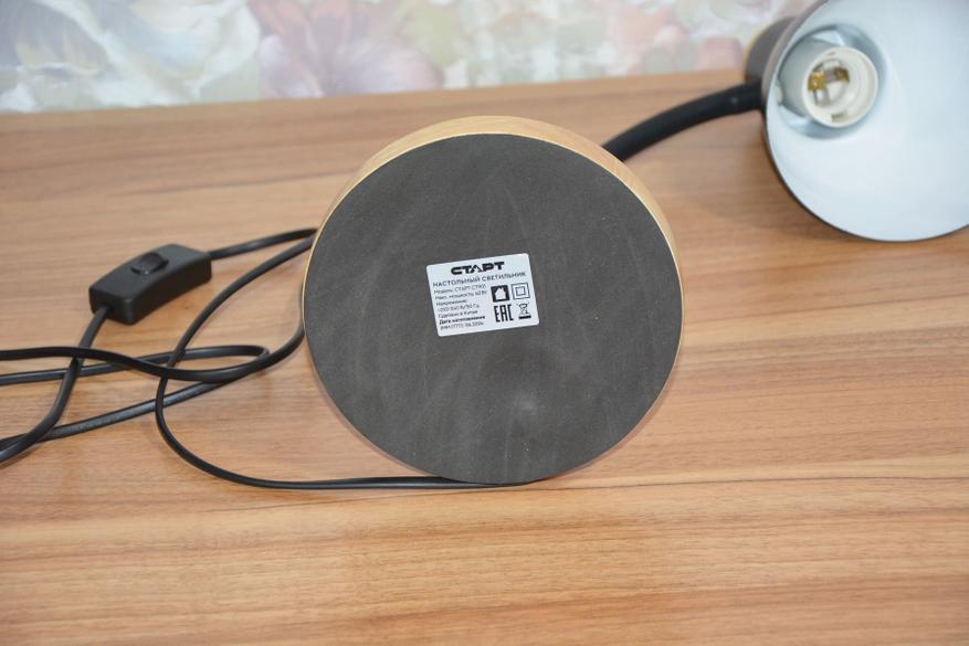 Чтобы лампа не царапала столешницу снизу приклеен диск из мягкого пористого материала. тут же имеется наклейка с характеристиками светильника.