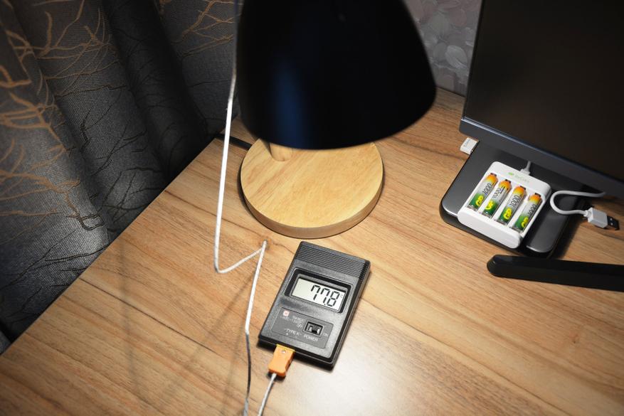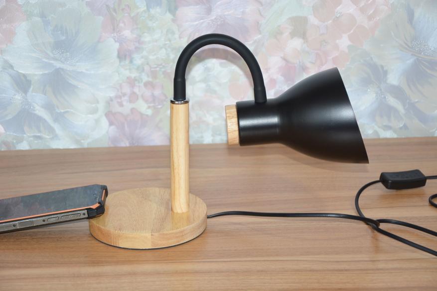 И сняв защиту убеждаемся, что перед нами классика в современной интерпретации. Такой светильник не займет много места на столе, не испортит интерьер, не страдает вычурностью и не отдает «новоделом». Приятный внешний вид, аккуратность и где-то даже ассоциации с «теплым ламповым звуком», как у ценителей винтажного аудио. Причем ни на коробке, ни в инструкции не сказано, что часть конструкции выполнена из дерева. Хотя снимая упаковку думал, что это пластик, но тактильно и присмотревшись убедился, что дерево.