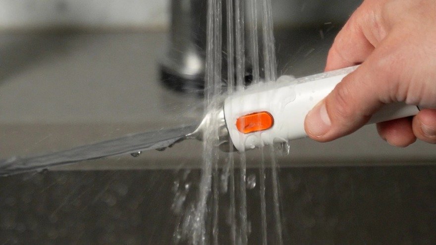 Особенность устройства в его универсальности — нож одинаково эффективно справляется с мягкими продуктами, овощами и даже хлебом, для которого обычно требуется специальный зубчатый нож. Корпус устройства полностью водонепроницаем, что обеспечивает безопасность использования и упрощает уход.