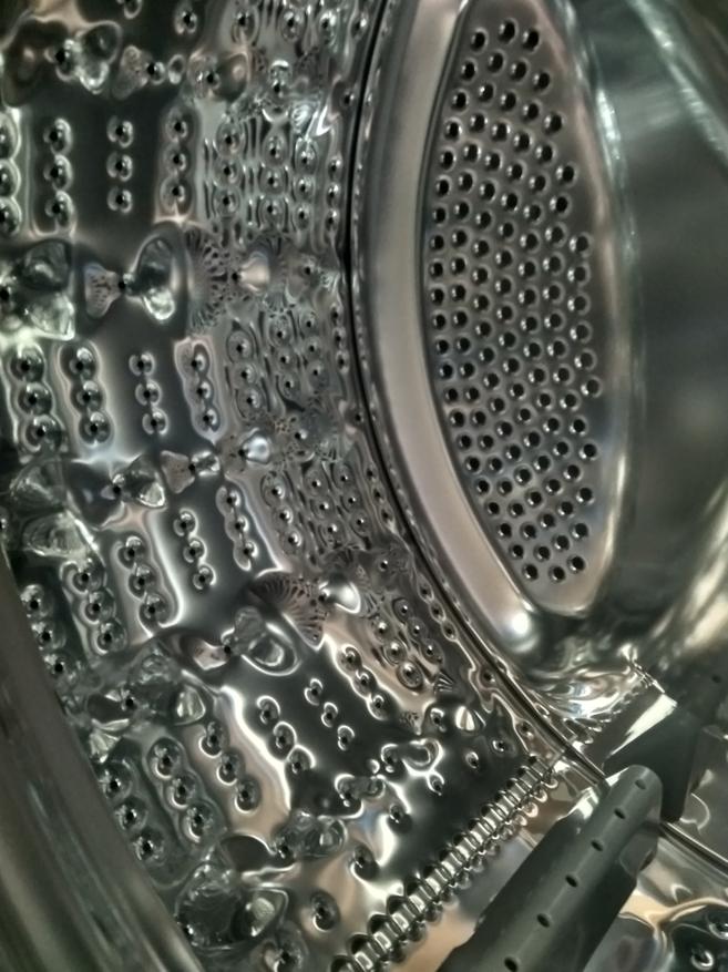 Главным достоинством этой машинки является инверторный двигатель с системой прямого привода. Двигатель крепится напрямую к барабану, и благодаря такой конструкции повышается надежность и долговечность работы двигателя, а также отсутствуют вибрации при максимальных оборотах. Есть интересная функция «технология 6 движений заботы». В зависимости от типа ткани и степени загрязнения белья машинка подбирает вариант вращения барабана. Еще одна очень полезная функция — это функция мобильной диагностики. Можно позвонить в сервисный центр, и специалист с помощью специальной программы по звуку определит неисправность и способ устранения (если проблема несерьезная). Также по звуку можно определить неисправность с помощью мобильного приложения.