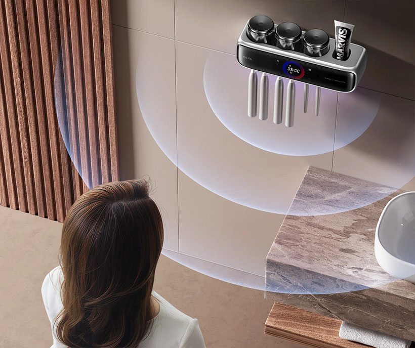 Компании Suosi и CKPA выпустили новую подставку для зубных щёток, оснащённую системой ультрафиолетовой дезинфекции. Устройство разработано в рамках дизайнерской концепции Future Sense, объединяющей технологические решения с минималистичным внешним видом.