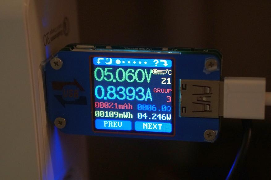 Работает светильник-ночник на максимуме около 8 часов, а в минимальном режиме до 30 часов. Зарядка осуществляется током около 0.8А в течении трех часов. Аккумулятор соответствует заявленным 1800мАч: