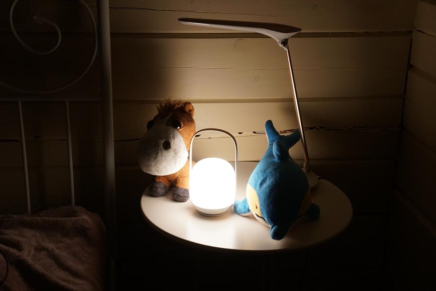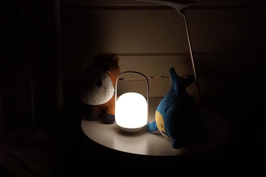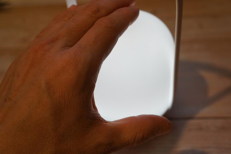 Еще одной интересной фишкой светильника является то, что когда он стоит выключенным на док-станции, которая подключена к сети, если его поднять он автоматически включится, т.е. не нужно даже делать двойное касание. Просто встал ночью попить, поднял за ручку ночник и свет плавно включился.