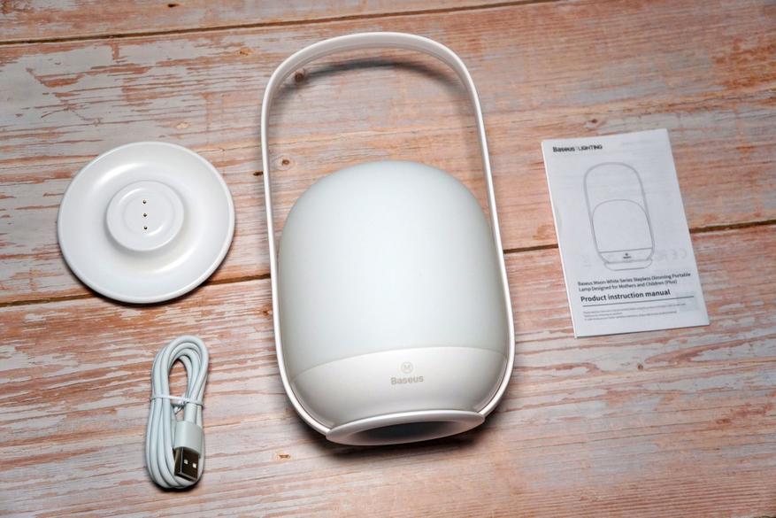 В комплектацию входит: светильник, док станция для зарядки, кабель и инструкция: