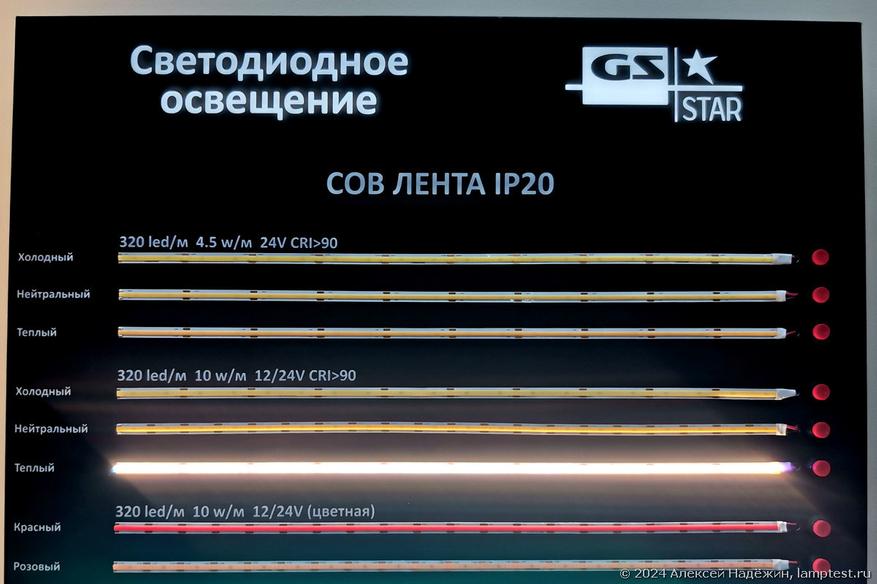 Ленты почему-то всегда отстают от ламп и до сих пор можно увидеть в продаже светодиодные ленты с Ra 60. Но ситуация меняется к лучшему — всё больше компаний начинают выпускать ленты с «нормальным» светом Ra 80, а также ленты с улучшенной цветопередачей и Ra выше 90. Вот они у Geniled, GS Star, General.