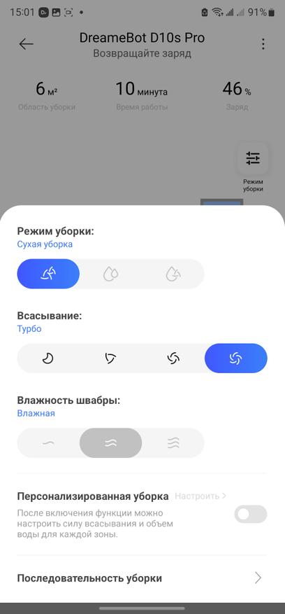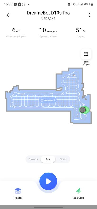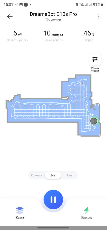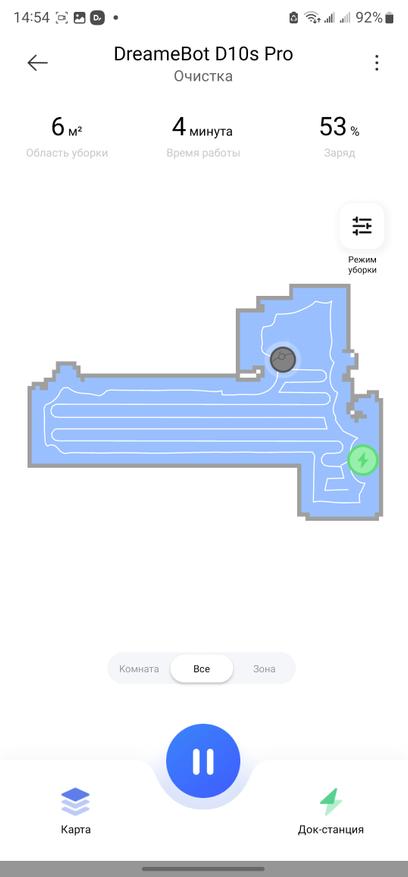 Для работы с роботом потребуется скачать на выбор одно из двух приложений: Dreame Home или Xiaomi Mi Home. Я предпочитаю Dreame Home, этот вариант быстрее получает обновления от производителя в части новых моделей роботов, а также имеется плагин для работы с колонками «Алиса» умного дома Яндекс. Имеется версия приложения как под смартфоны/планшеты на базе Android, так и iOS. С помощью приложения можно настроить режимы уборки, например можно запустить автоматическую уборку, зонную уборку, установить виртуальные стены и барьеры. В автоматическом режиме робот сначала выполняет контурную уборку по плинтусам и краю помещения, а затем двойную зигзагообразную уборку по всей площади. Также поддерживается работа с голосовыми помощниками и управление через умные колонки. Карта формируется после первой уборки, затем можно сохранить, отредактировать, добавить запретные зоны или барьеры, или наоборот, указать место для приоритетной уборки. Для сухой уборки сначала выполняется уборка по плинтусу (по контуру помещения), затем S-образная уборка площади. При необходимости, робот запоминает место остановки, возобновляет уборку.