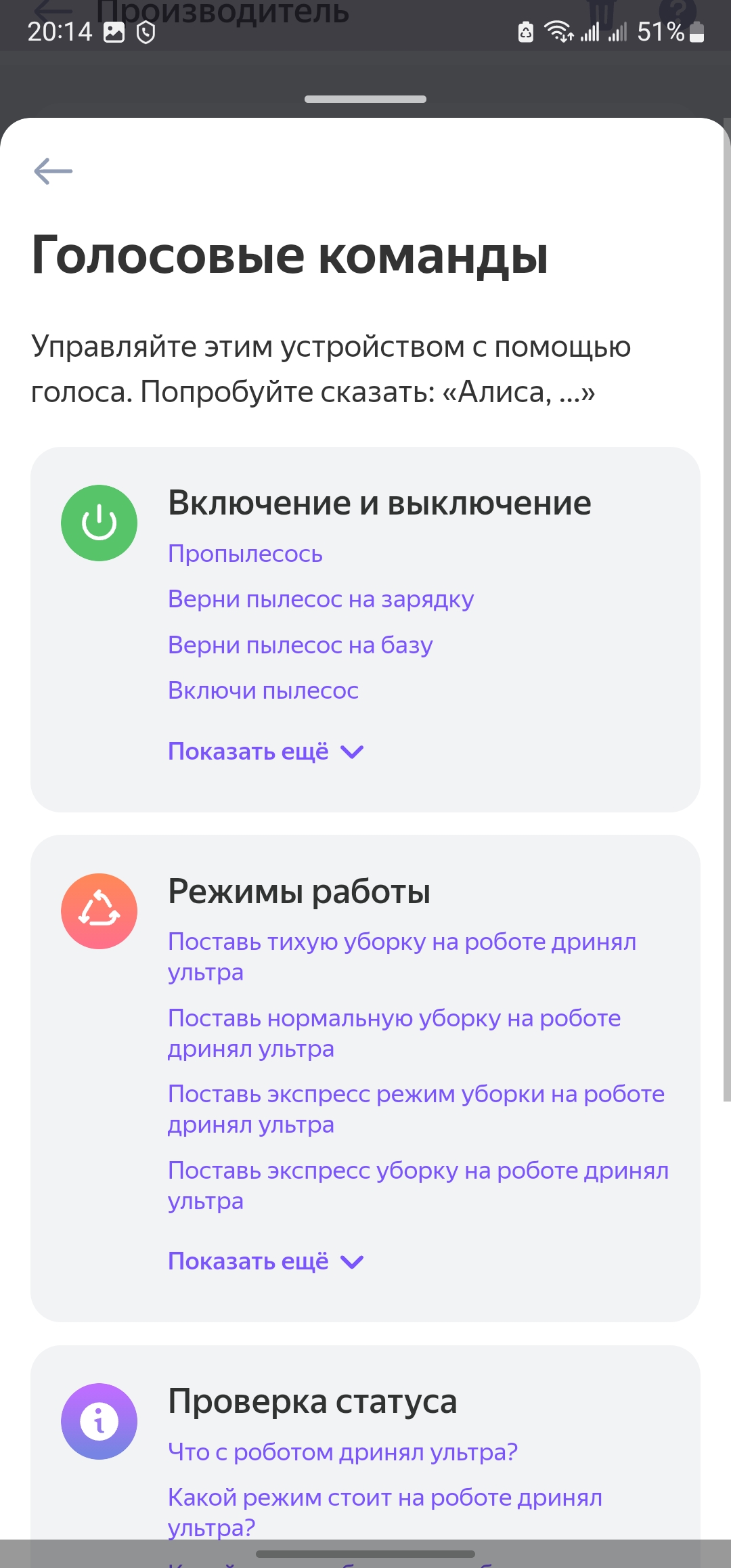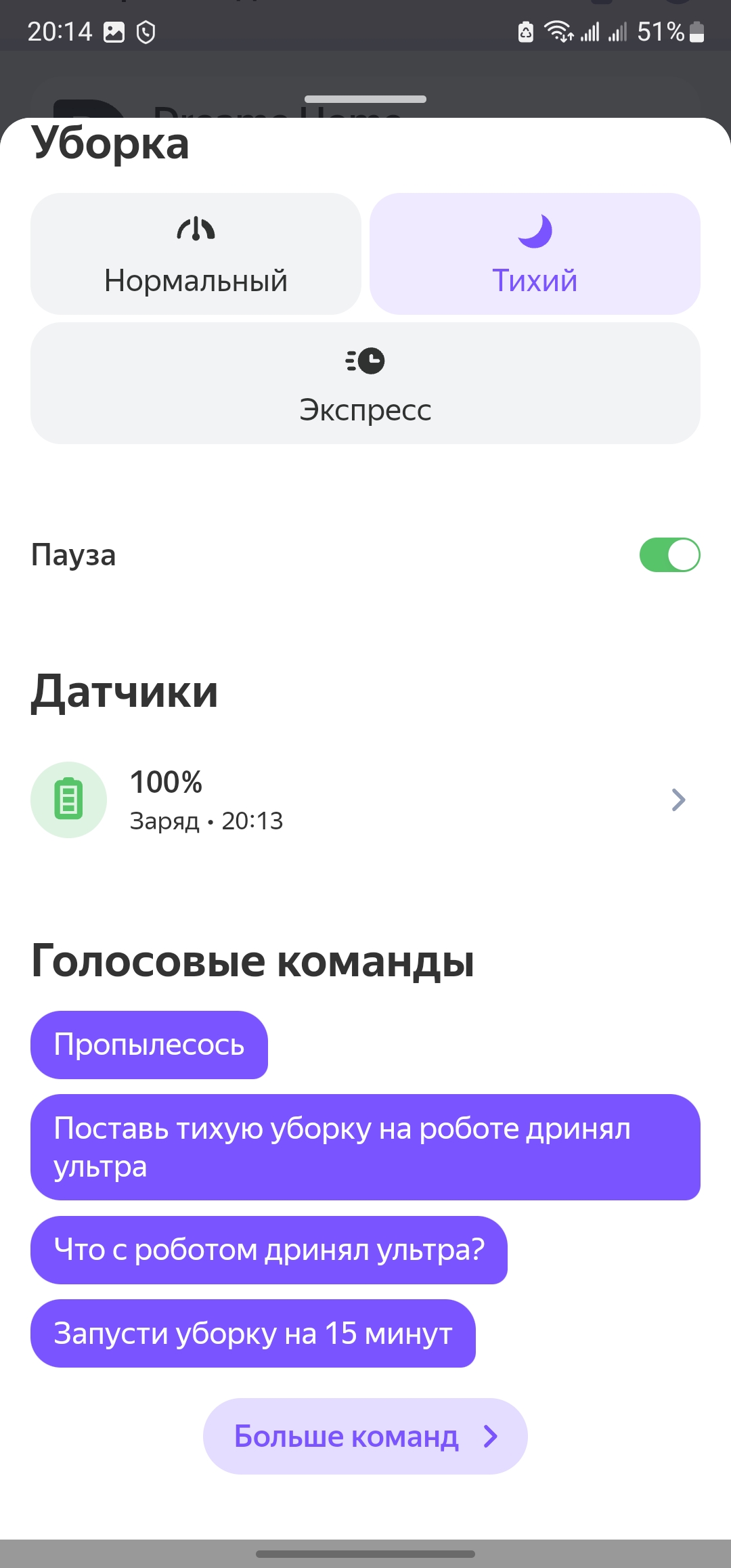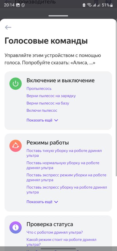 Кстати, роботом можно управлять и с помощью голосовых команд. Например, через умные колонки Яндекса. Для этого просто добавляем нужную модель в вашу учетную запись. Для этого переходим на страницу настройки и добавления устройств «Мой дом» Яндекса и добавляем новое устройство. Выбираем нужную модель Dreame и по инструкции привязываем плагин из приложения. После настройки будут доступны простые голосовые команды (Начать уборку, завершить уборку