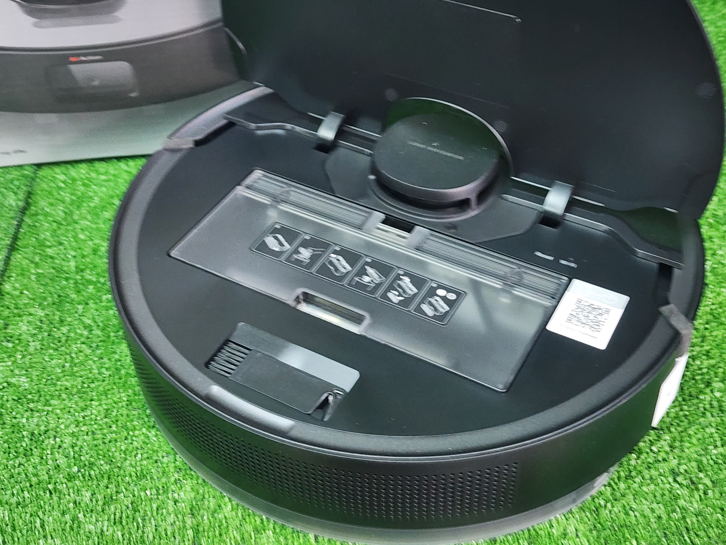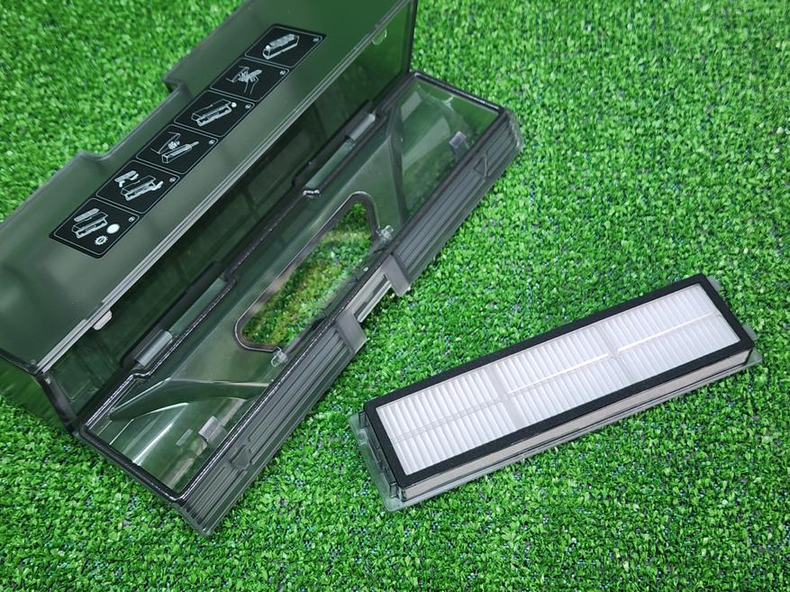 Пылесос построен по классической схеме — одна боковая щетка, башенная надстройка с лидаром, контактные и бесконтактные сенсоры, включая датчики падения с лестницы и чувствительный сенсор объектов. Контейнер для мусора расположен под крышкой, ёмкости достаточно для ежедневной уборки. Сам контейнер выполнен из полупрозрачного акрилового стекла, довольно просто извлекается и раскрывается для очистки. Внутри находится комбинированный HEPA фильтр для удержания мелкодисперсной пыли. Также на внутренней панели робота присутствует инструмент для очистки контейнеров и щеток.