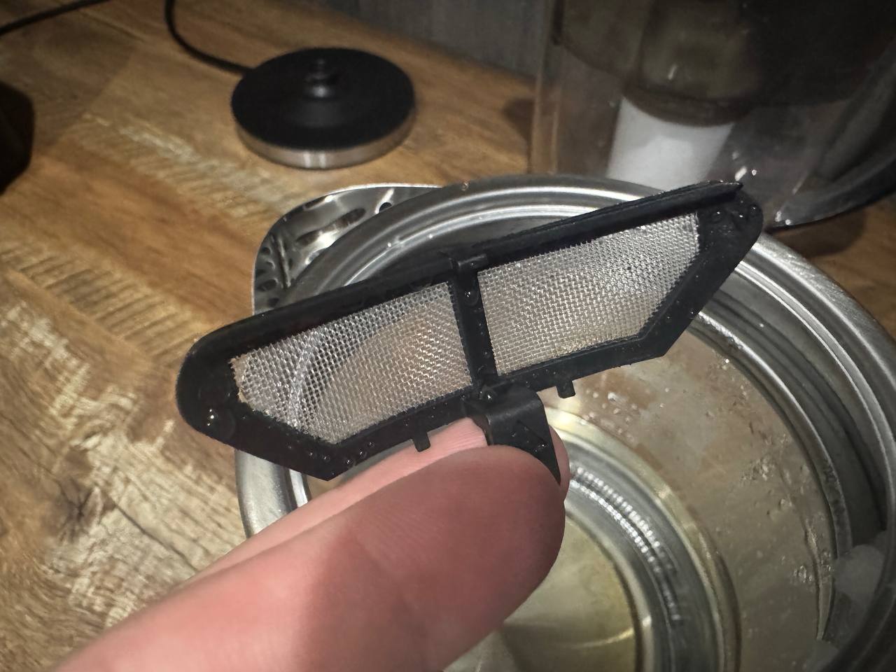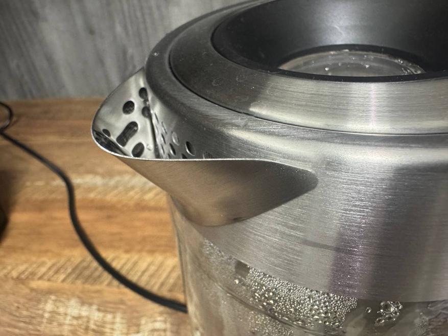 Носик имеет покатую форму и выполнен достаточно продумано. Фильтр на носике позволяет задерживать накипь. Также фильтр можно легко снять. Достаточно поятнуть за пластиковый язычек снизу. Обратно устанавливается тоже просто и без особых проблем.