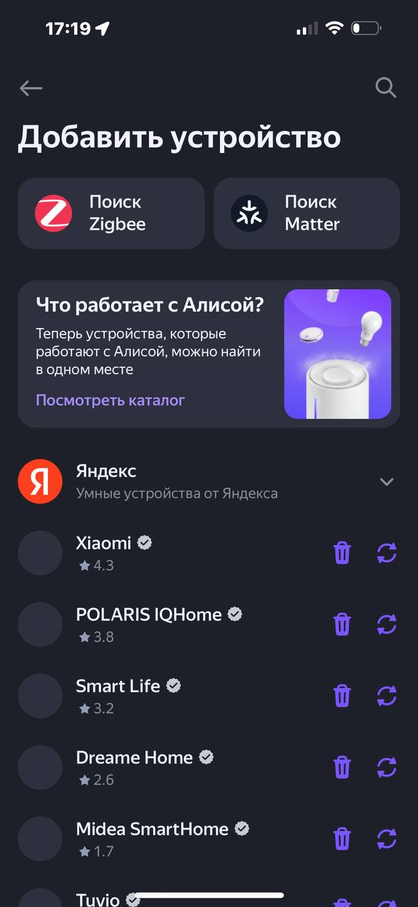 После настройки приложения его можно прокинуть через «Умный дом» с Алисой и управлять чайником голосом. Для этого преходим в приложение «Умный дом», нажимаем на «+» в верхнем левом углу и выбираем плашку «Устройства умного дома». Затем в поиске ищем приложение «POLARIS IQHome» и нажимаем подклчить. После этого чайник появится в приложении и им можно будет управль голосом. И да, Алиса умеет не только включать, но и «ставить» чайник. Разработкики предусмотрели такую команду со словом, которое у всех на языке, когда нудно вскипятить воду.
