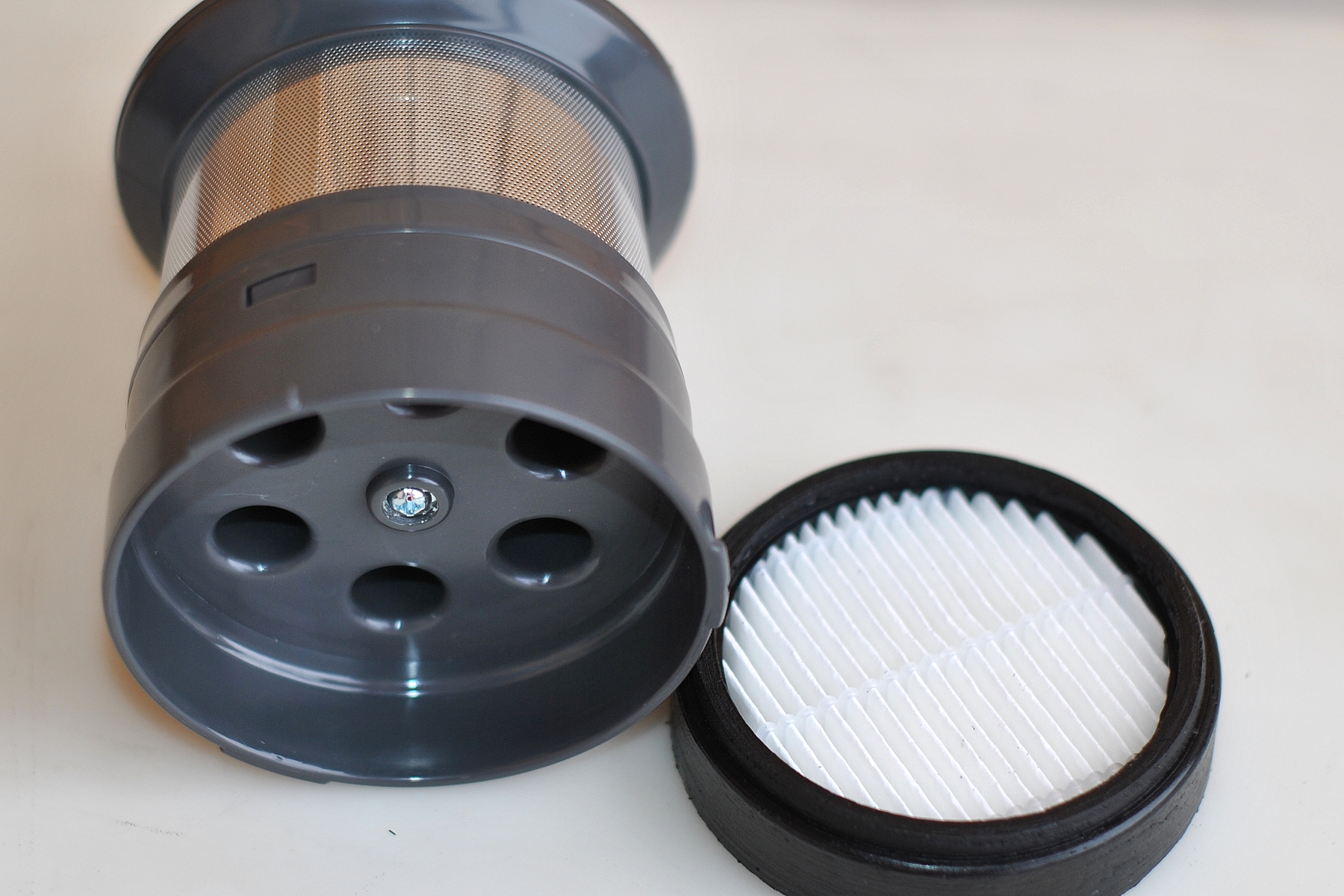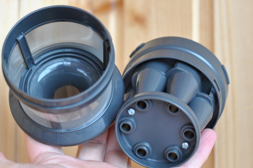 Фильтрация представлена: мультициклоном (не самым крупным) с сепаратором из нержавеющей сетки и предварительным HEPA-фильтром цилиндрической формы (перед ним нет поролоновой вставки).