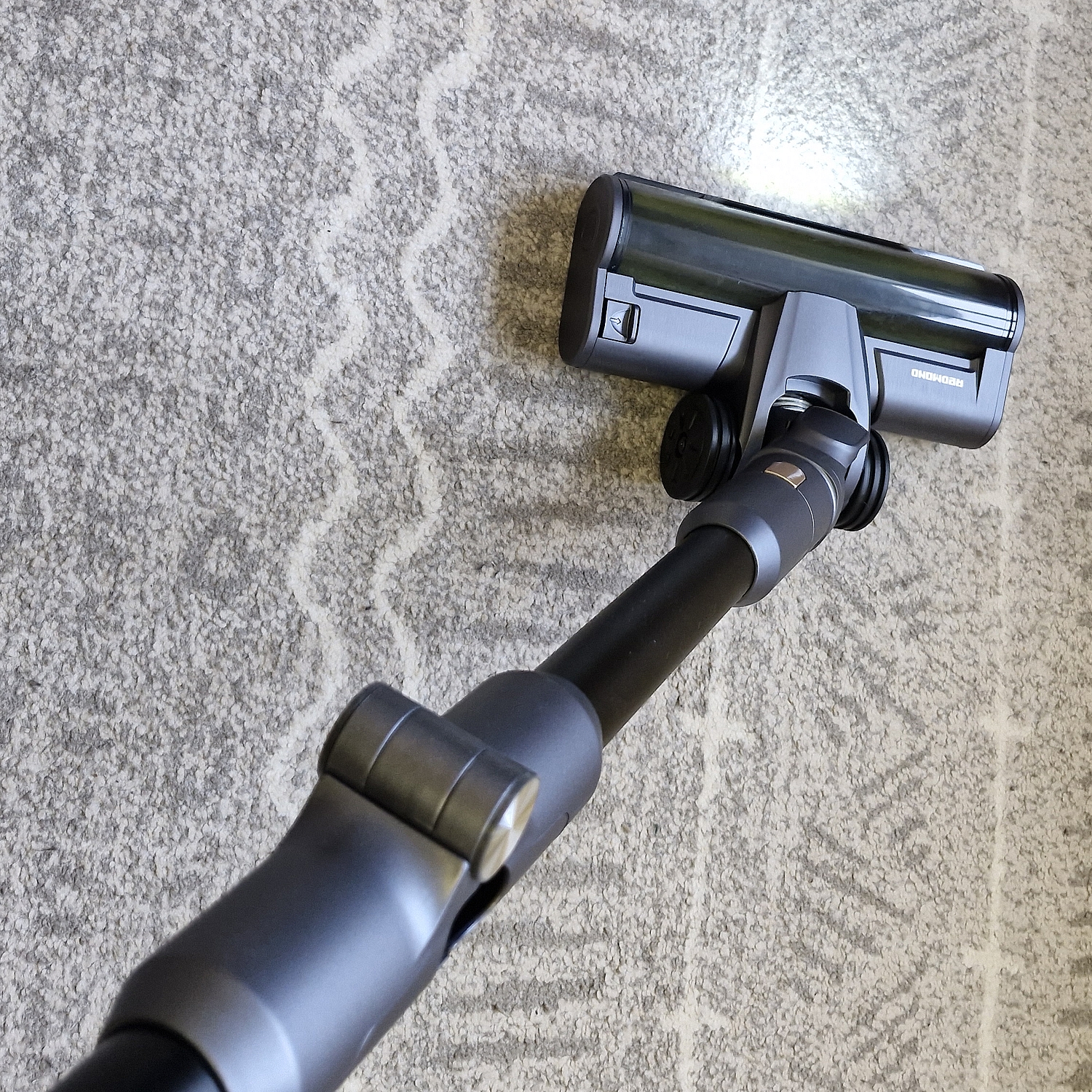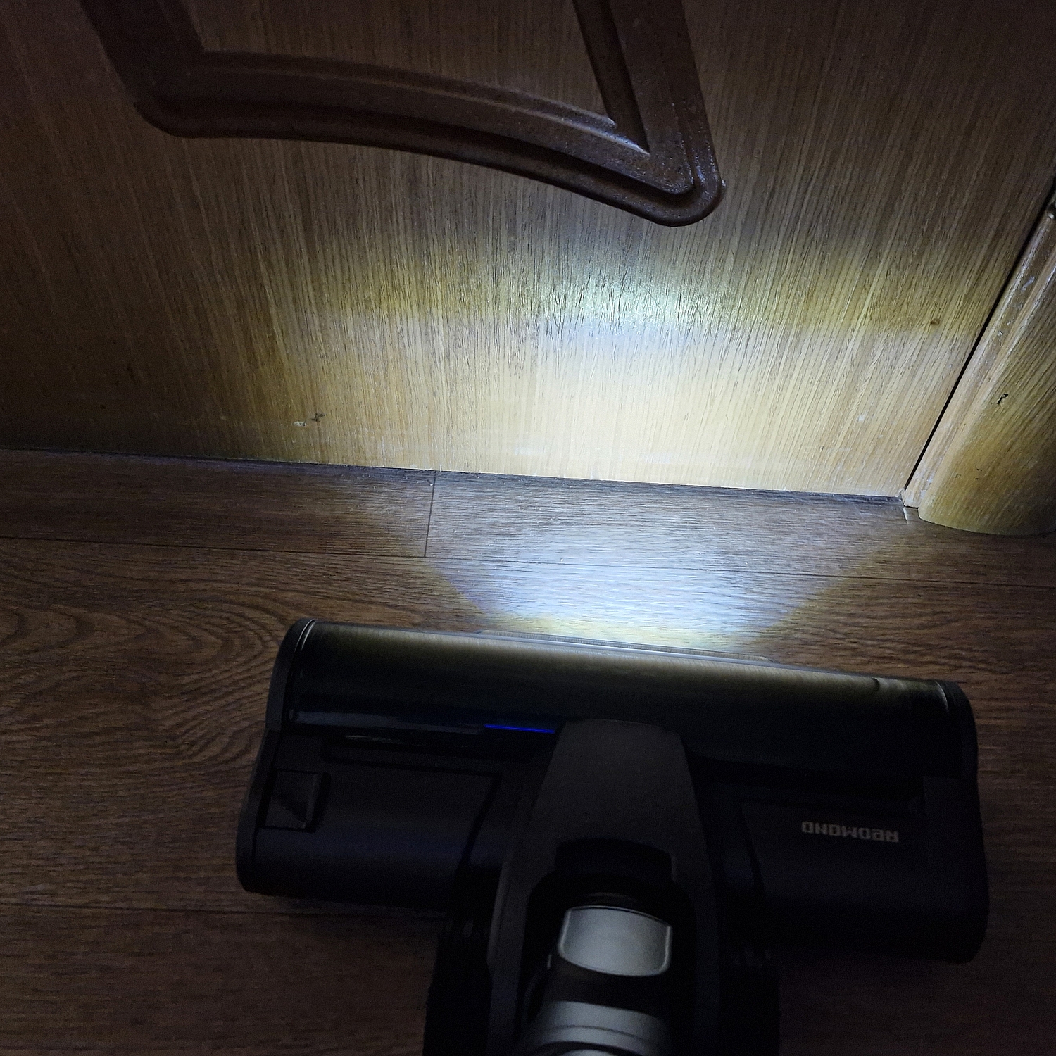 Подсветка (не отключаемая) эффективна в условиях недостаточного освещения, но лазер лучше выделяет пыль на фоне. Складное колено трубы удобно для уборки под мебелью примерно на 60 см.