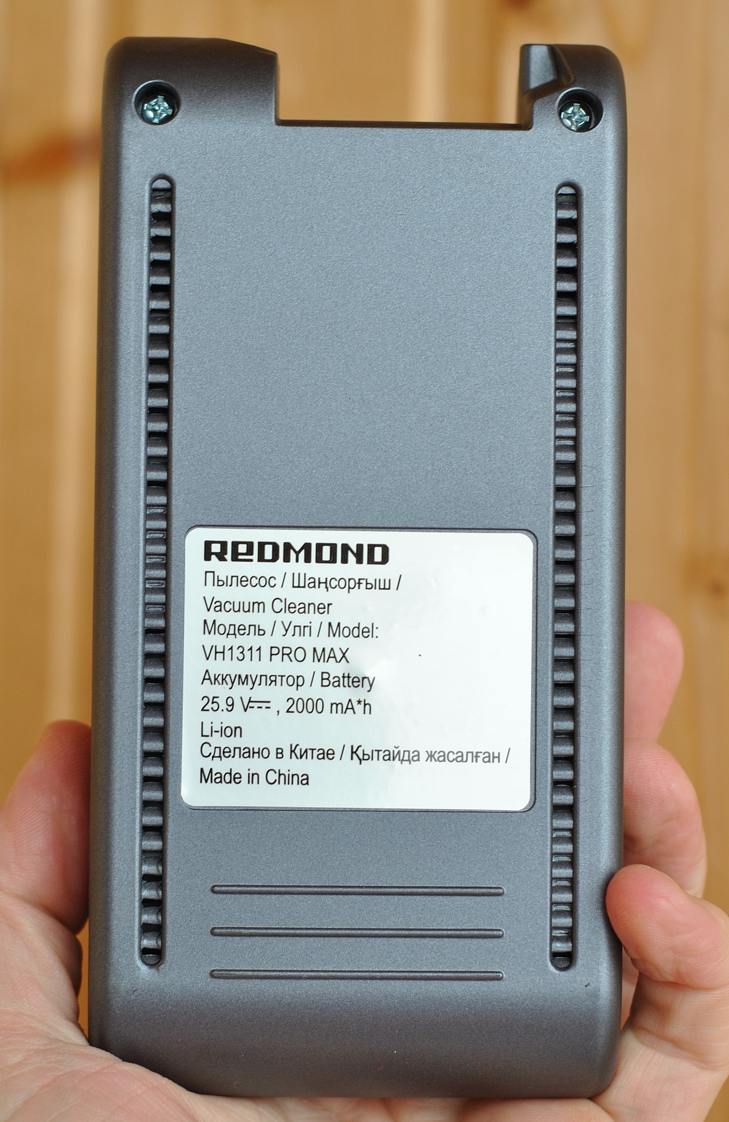 АКБ важная часть конструкции пылесоса, он обеспечивает реализацию мощности двигателя и в конечном счете эффективность уборки. Тут он сменный (в пластиковом корпусе с вентиляцией), что продлит срок эксплуатации пылесоса.