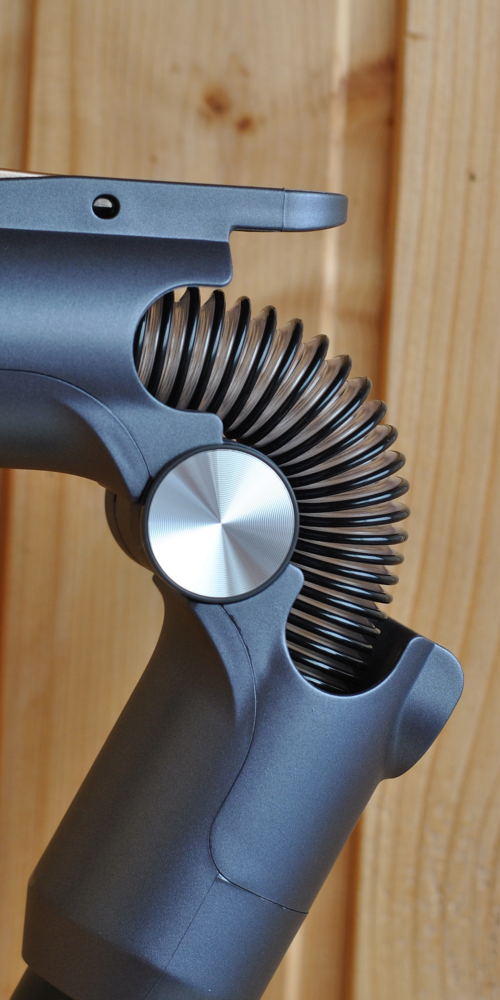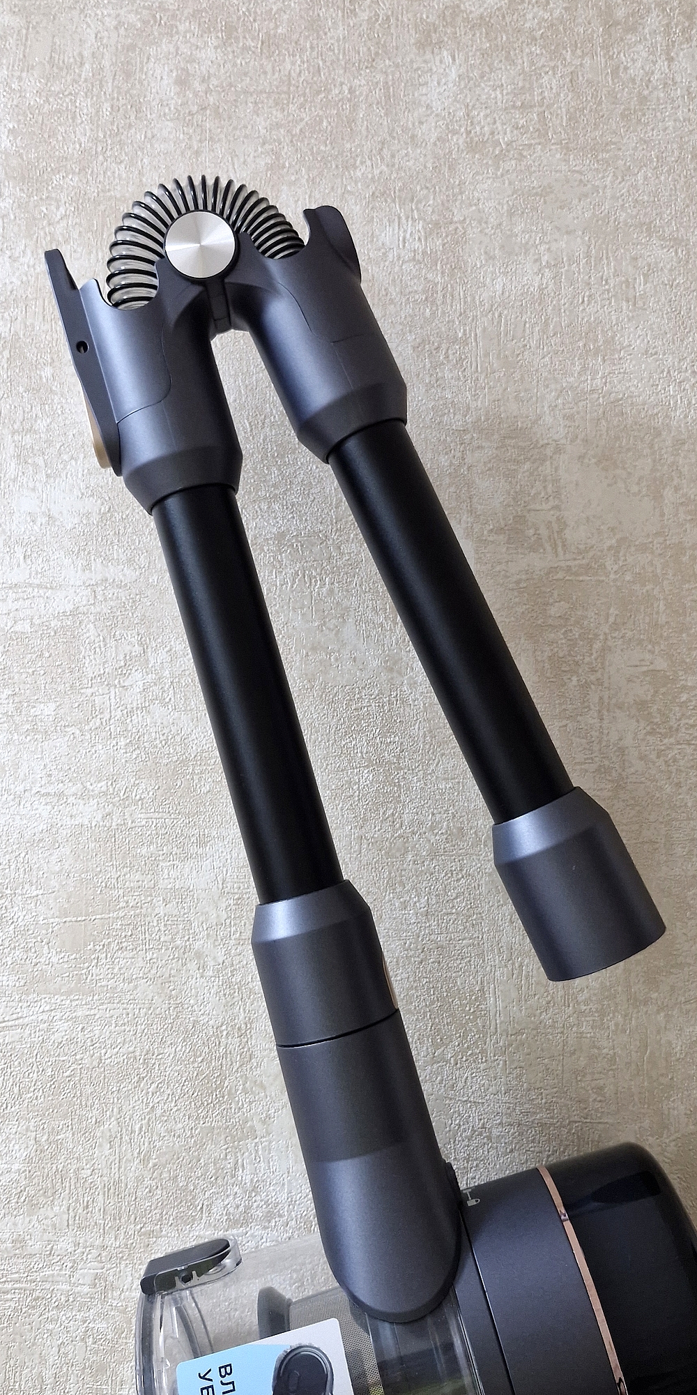 Шарнир позволяет сложить трубу почти на 180°, для уборки в трудно доступных местах под мебелью. Внутри трубы проходят контакты для привода турбощеток (их три вида).