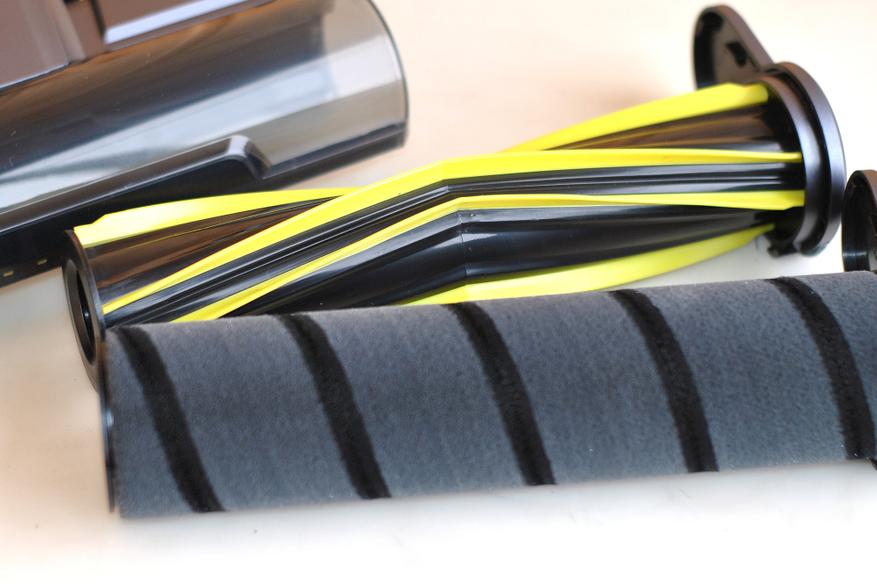 Напольная турбощетка в этой модели оснащается двумя роликами: с плотными резиновыми пластинками высотой 6 мм (для уборки ковров) и мягкая с коротким ворсом — для уборки гладких напольных покрытий. Замена простая. Рабочая длина щетки 24 см.