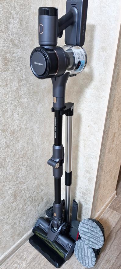 В сборе масса пылесоса VH1311 Pro Max зависит от насадок: для сухой/ влажно уборки пола почти 3 кг, в ручном варианте для локальной уборки меньше 2 кг. Высота от пола ~114 см.