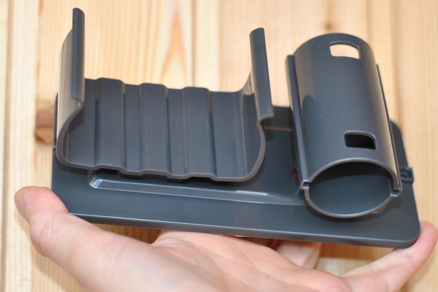 Для хранения всего этого набора доступно два решения: напольный держатель (высота 87 см, 4 места для вертикального хранения насадок) и настенное пластиковое крепление.