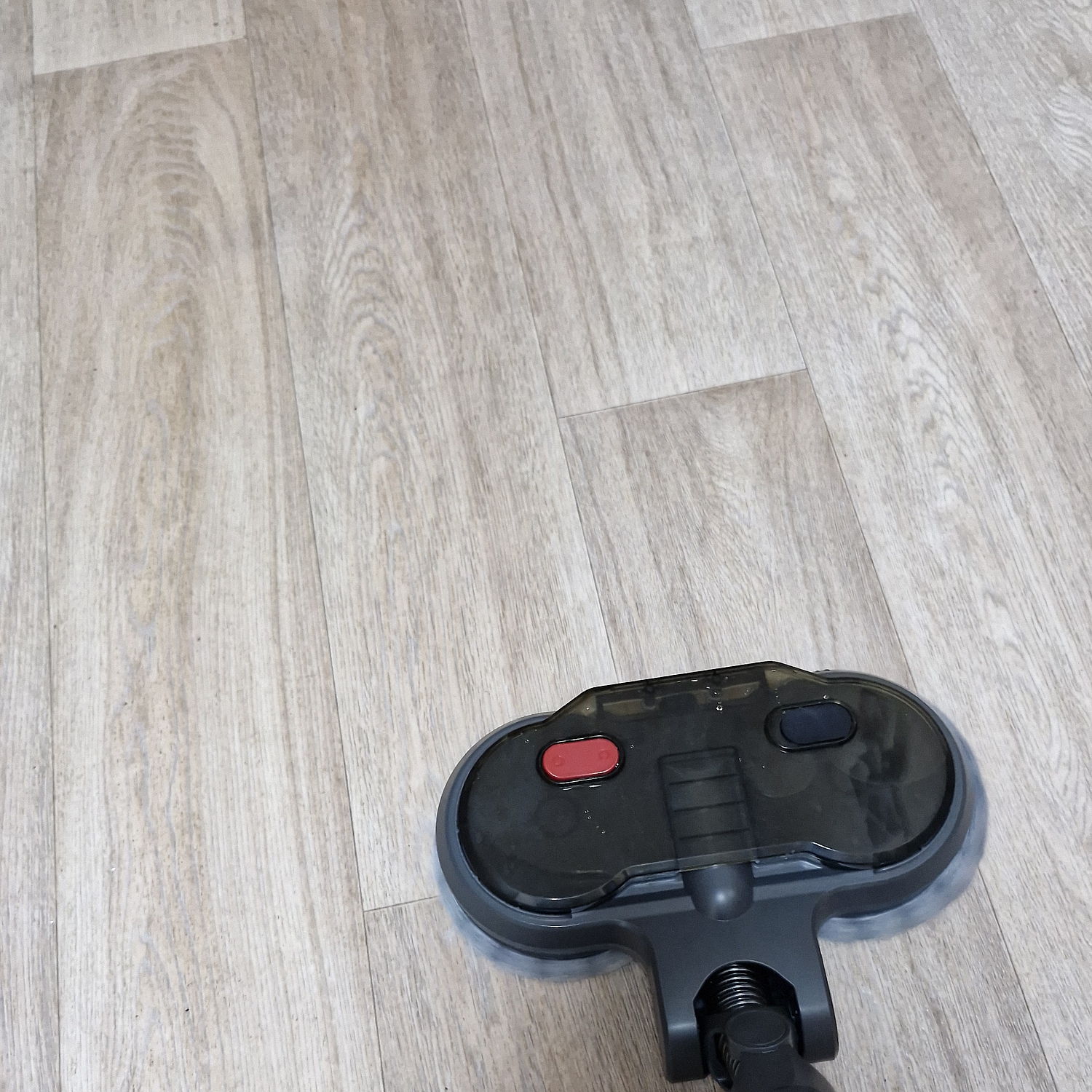Сначала сухая уборка пола турбощеткой с разными типами роликов.