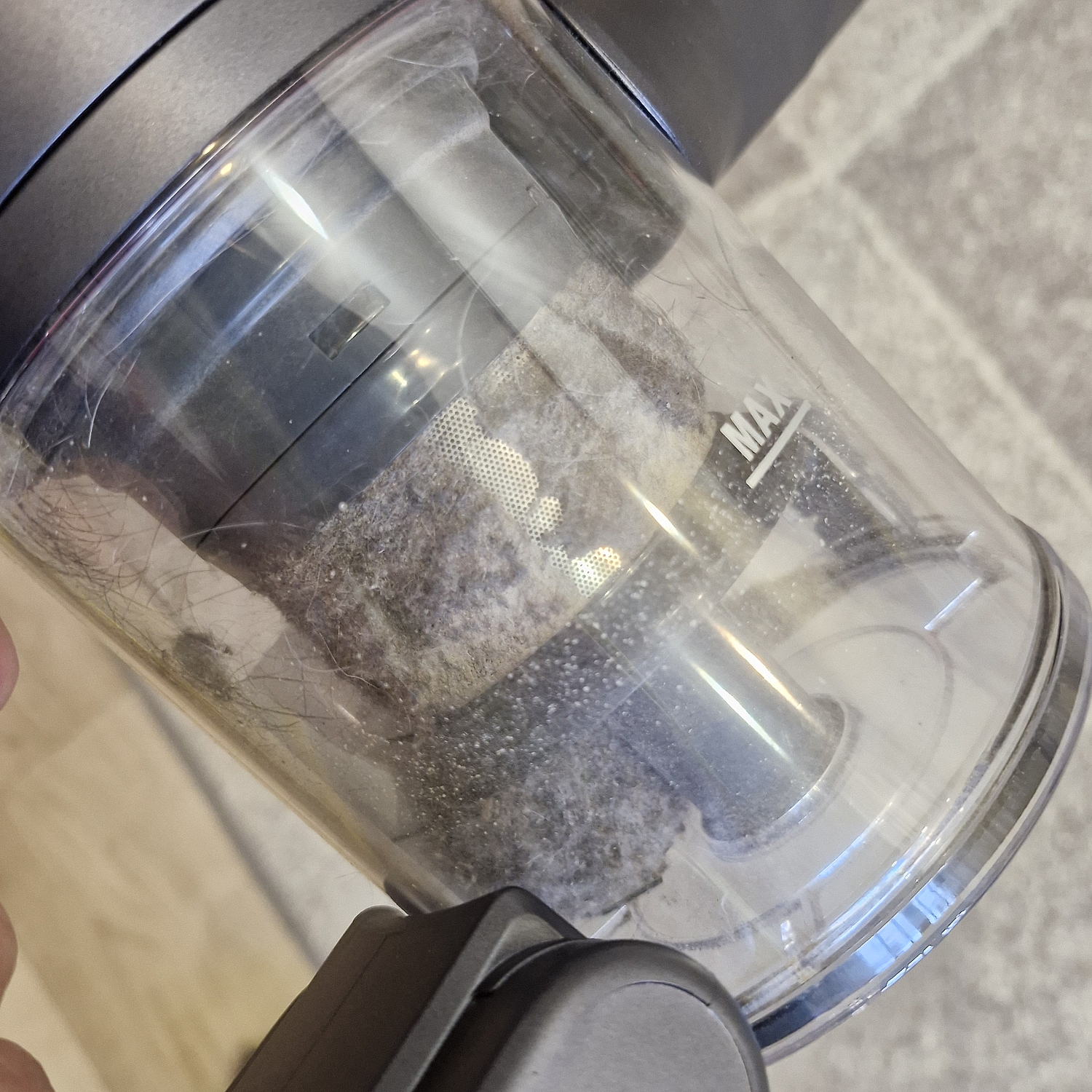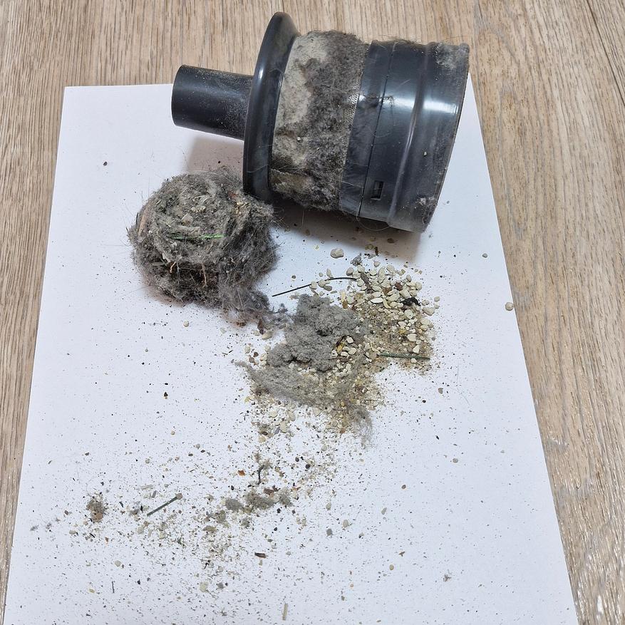 Отмечу эффективность ролика с резиновыми пластинками на коврах (как бы выбивает мелкую пыль), а ролик с коротким ворсом справляется с крупным мусором на гладких поверхностях (линолеум, ламинат). Запас по мощности в турбо режиме ощутимый, щетка присасывается к покрытию. Наружная сетка фильтра забивается довольно быстро, но и много собранно именно мелкой пыли.