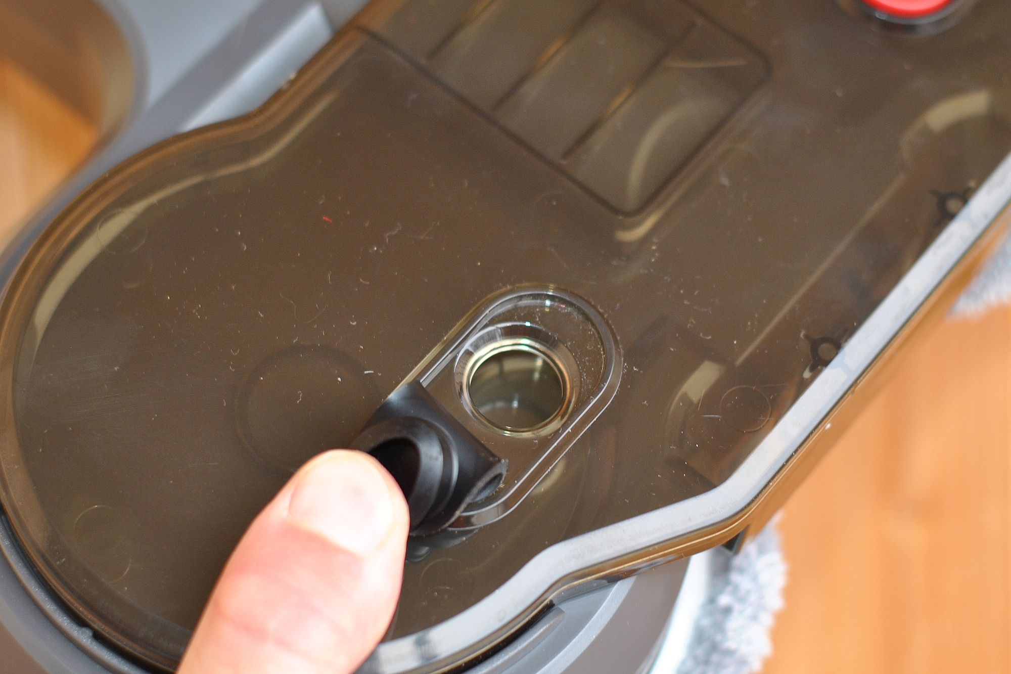 Переходим к влажной уборке. Подача воды капельно самотеком перед вращающимся салфетками.