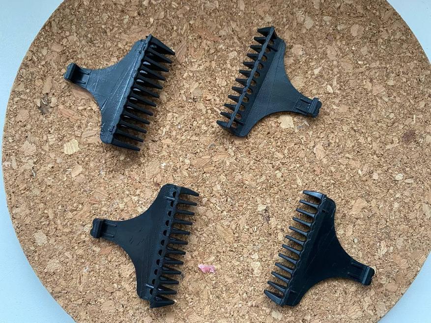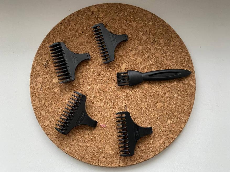 Всего дополнительных насадок в комплектации 4 штуки: 1.5 мм, 3 мм, 4.5 и 6 мм, то есть только те, которые широко используются в обычных машинках для стрижки.