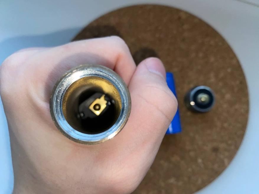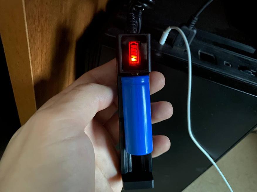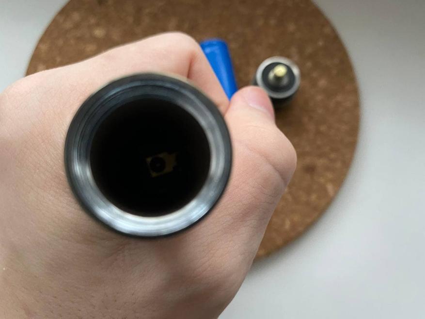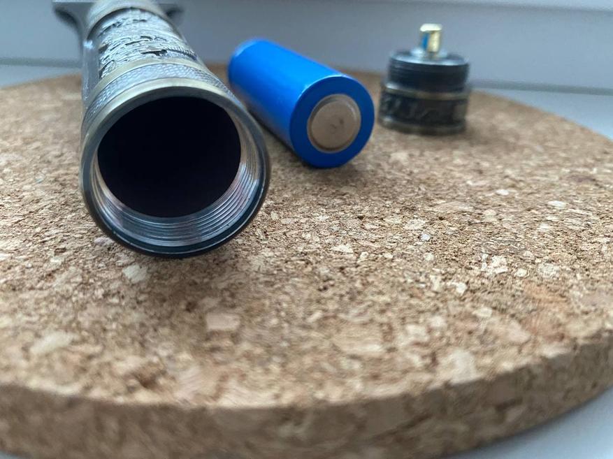 Откручиваем крышку и внутри находим урезанную версию аккумулятора 18650 – здесь 18500 емкостью 1200 мА*ч.