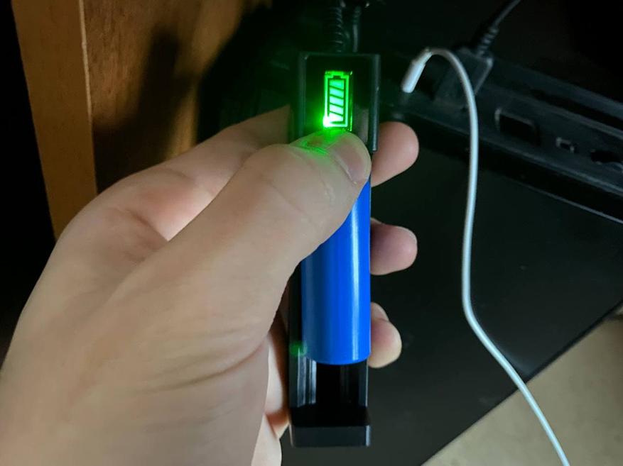 Когда индикатор (светодиод) горит красным цветом, значит что аккумулятор нуждается в подзарядке. А зелёный цвет означает, что аккумулятор заряжен.