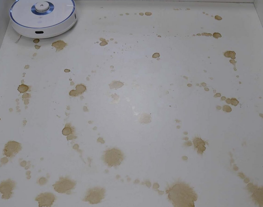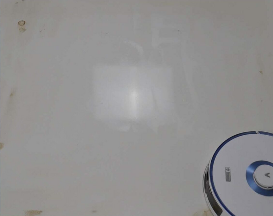 В плане влажной уборки Viomi S9 не показывает ничего особенного. На смачивание микрофибры потребуется не менее 2 минут, так что лучше предварительно смочить её вручную. Присохшую грязь Viomi S9 смог удалить с третьего захода, но не до конца. С комплексной уборкой пылесос тоже справляется неплохо, но всё-таки оставляет разводы.