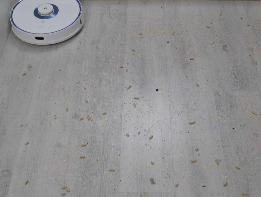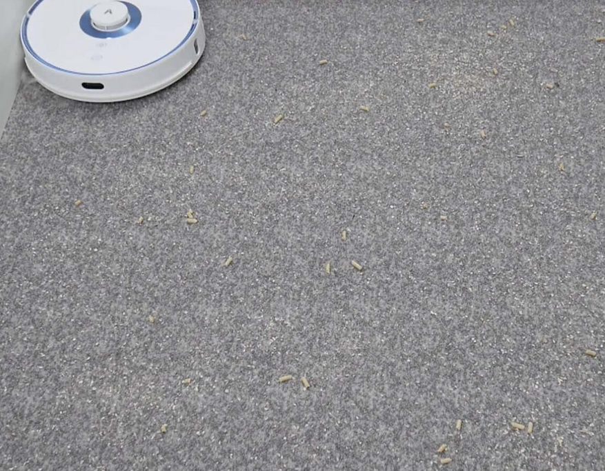 Ожидания от робота были не самыми высокими, т.к. у него стандартный показатель 2700 Па и единственный проезд в автоматическом режиме. Тем не менее пылесос ухитрился собрать 95% соринок на ламинате и 93% песка.