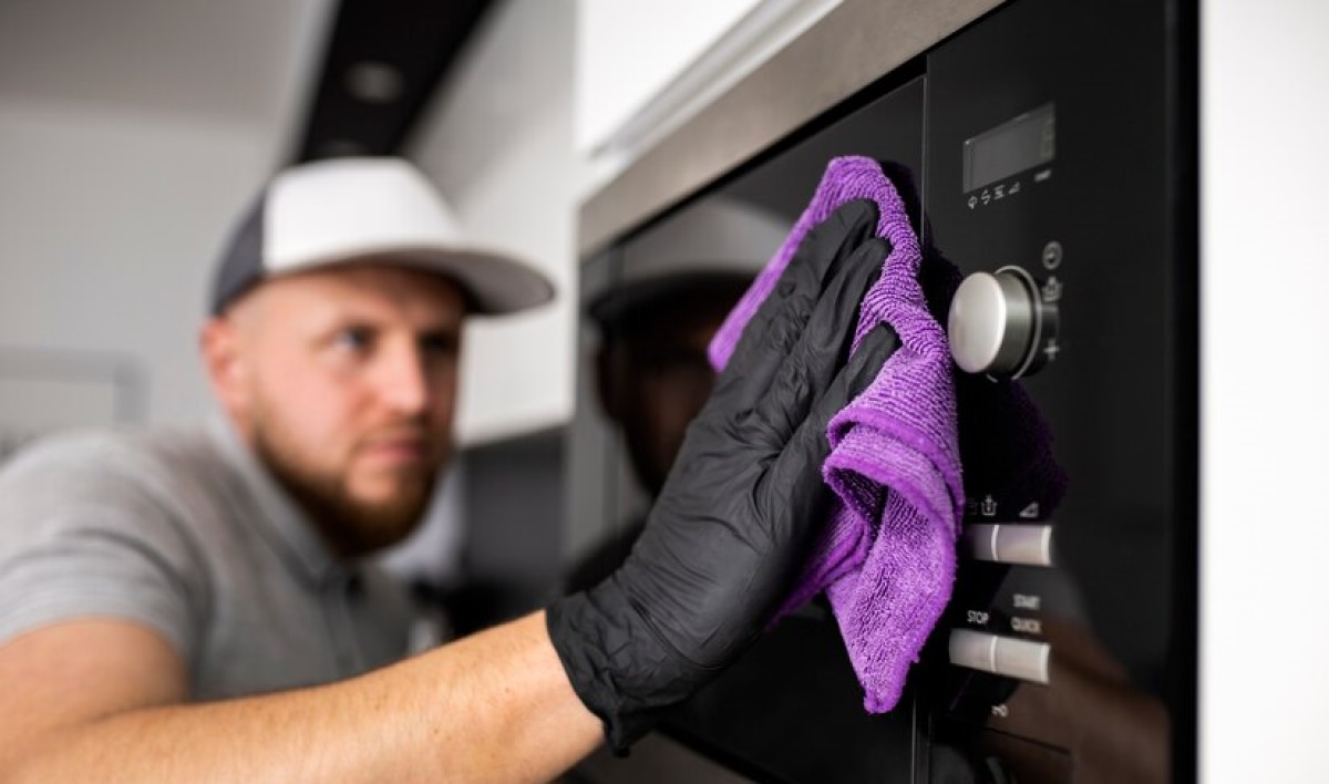 Моющее средство наносится равномерно внутри камеры и, если жирные пятна сильно застарелые, их оставляют на 1-2 часа. Когда препарат подействует, остатки жира, нагара, копоти и пригоревших органических остатков удаляют с помощью чистой влажной салфетки.