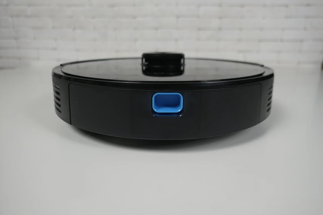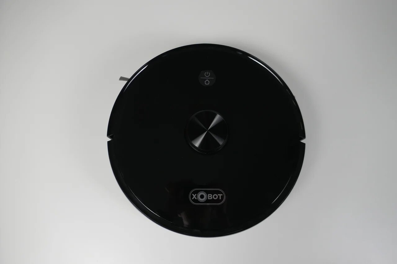 Xbot L7 Pro выполнен в форме «таблетки» с башенкой лидара. Лицевая панель глянцевая, поэтому придётся время от времени протирать её тряпочкой. Габариты стандартные – 350 х 98 мм. Стационарное управление представлено двумя кнопками: пуск и возврат на базу.