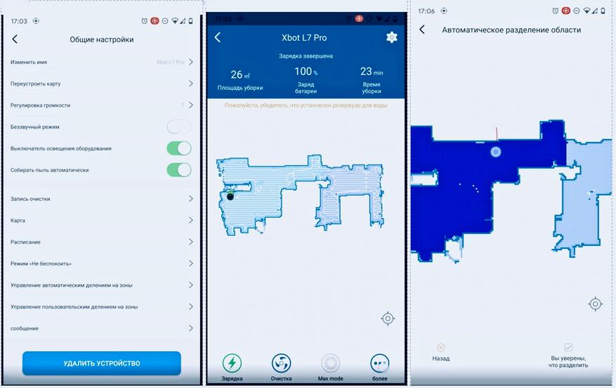 Робот поддерживает управление через фирменное приложение. Оно предлагает такие возможности: