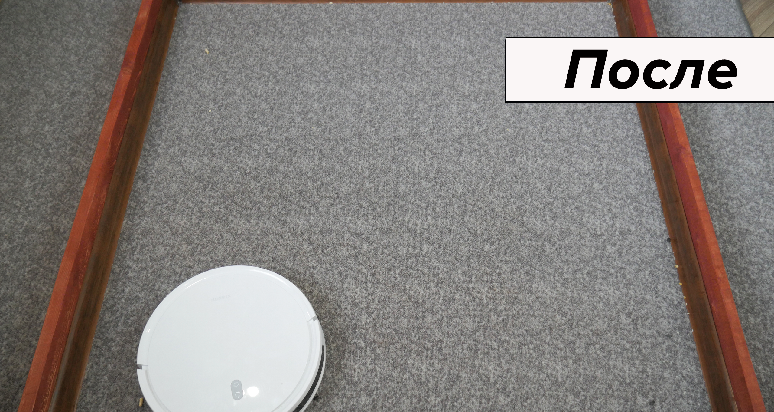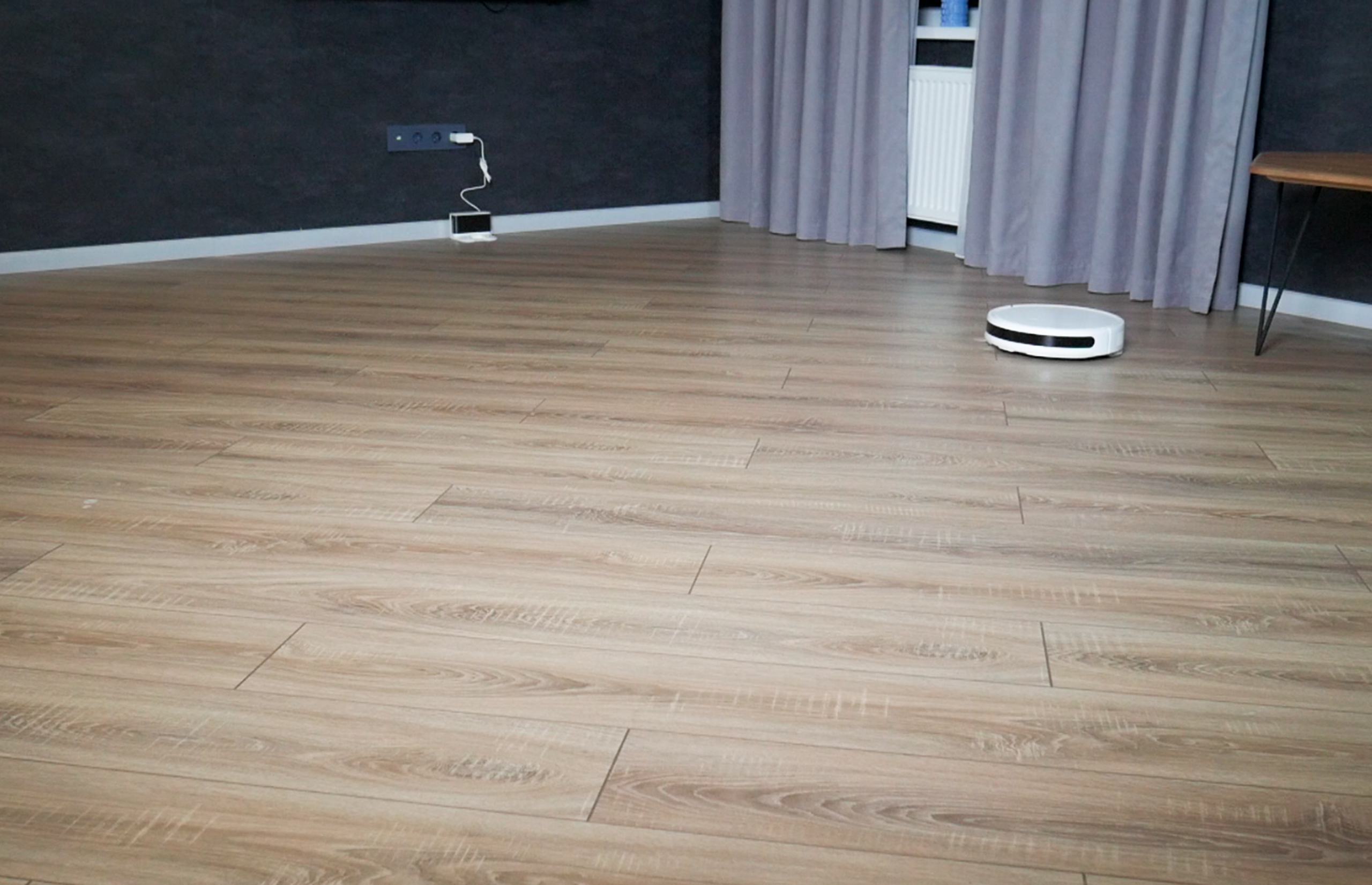 По итогу таких метаний удалось собрать на ламинате 96% мусора. Столь хороший результат объясняется сложным маневрированием у пристенных участков, откуда достать соринки труднее всего.