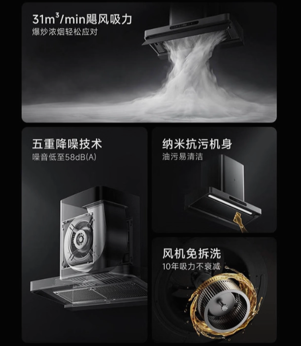 Технической основой вытяжки выступает высокоскоростной инверторный двигатель постоянного тока. В систему управления интегрированы алгоритмы искусственного интеллекта, которые в режиме реального времени измеряют уровень аэродинамического сопротивления в вентиляционном канале здания. На основе этих физических данных устройство автоматически регулирует мощность всасывания для поддержания стабильной тяги при изменении давления в общей шахте. Производитель также внедрил пятиступенчатую аппаратную технологию шумоподавления, ограничивающую максимальное звуковое давление при работе прибора на уровне 58 децибел.