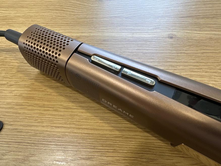 Корпус Dreame Aero Straight производит впечатление с первых секунд. Крупный, увесистый, но при этом сбалансированный. Он ощущается не как обычный бытовой прибор, а как стильный аксессуар. В нём сочетаются и элегантность, и продуманность, чувствуется уверенность в каждой линии и внимательное отношение к деталям. Корпус выполнен из пластика высокого качества с мягким матовым блеском. Цветовая гамма сочетает золотисто-бронзовые и коричневые оттенки, теплая, глубокая, без дешевого глянца, с тем самым «дорогим» спокойствием, которое сейчас в моде.