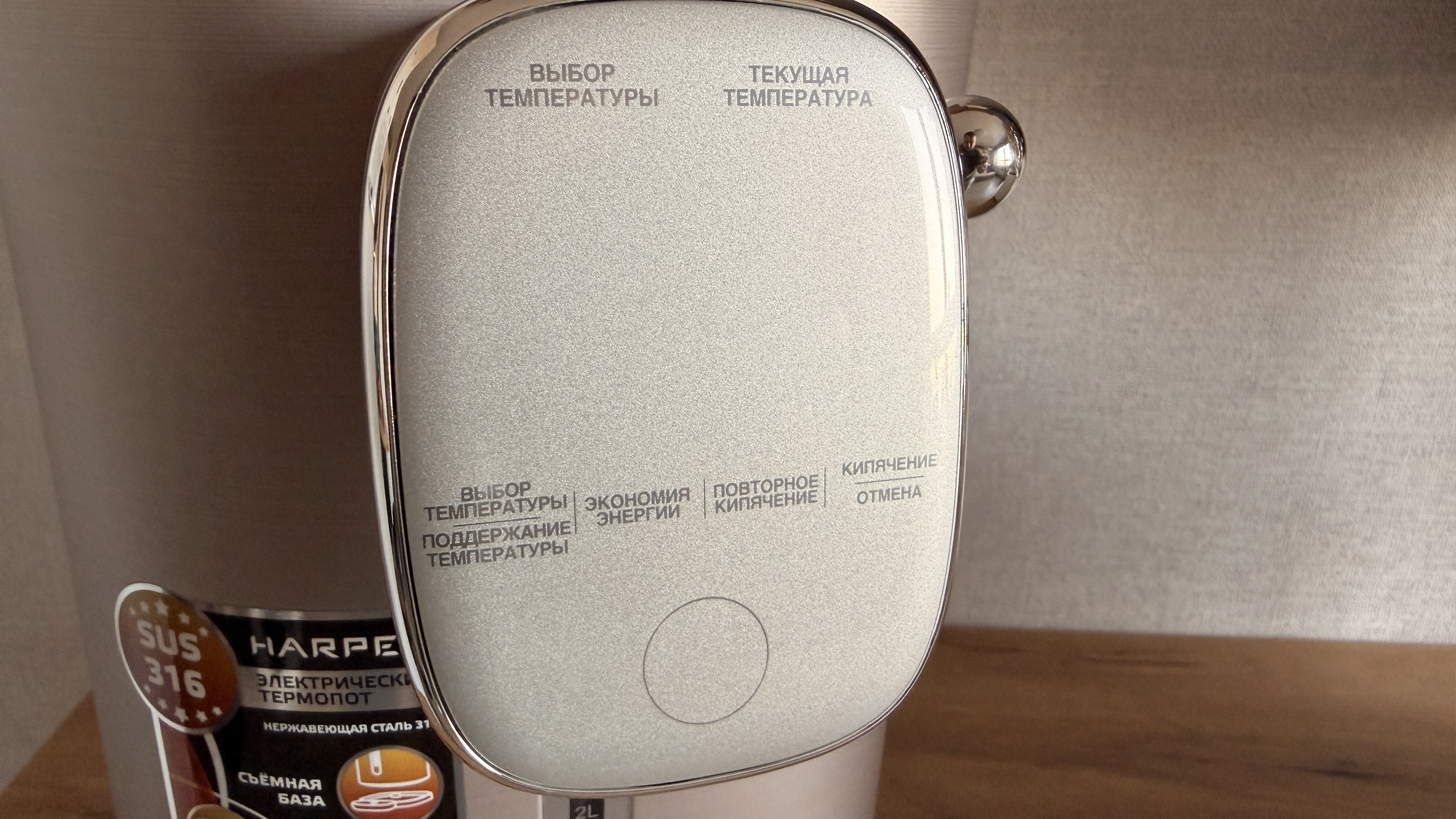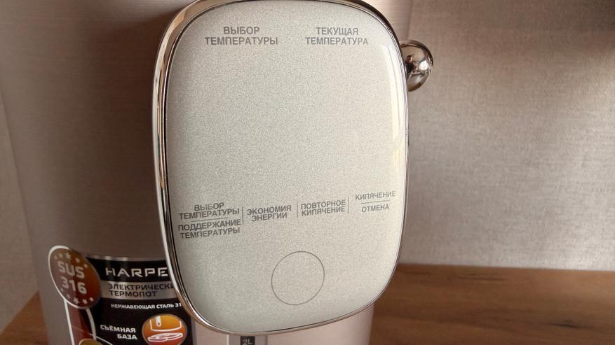 Термопот Harper HTP-5T02 оказался современным (сенсорное управление, стильное оформление иконок дисплея, такое же, как на моей кофеварке), удобным и полезным устройством. В нашей семье, когда чай выдвинут в ранг постоянного напитка и остается только выбирать его различные вариации, владение термопотом выходит выгоднее, и не в пример удобнее, чем обычным чайником.