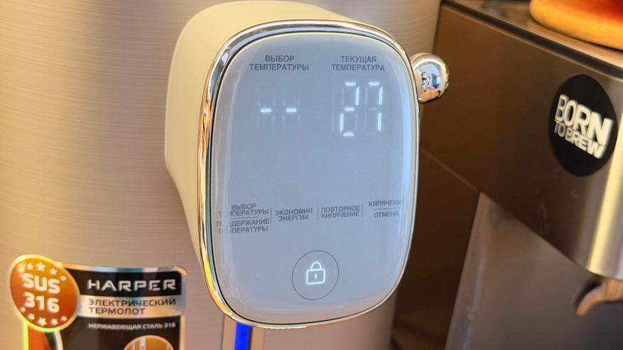 Компания Harper представила новый термопот, который отвечает всем современным требованиям. Он выделяется регулировкой температуры, быстрым наливом, сенсорным управлением с цветным дисплеем, дехлорированием и удобными элементами сборки.