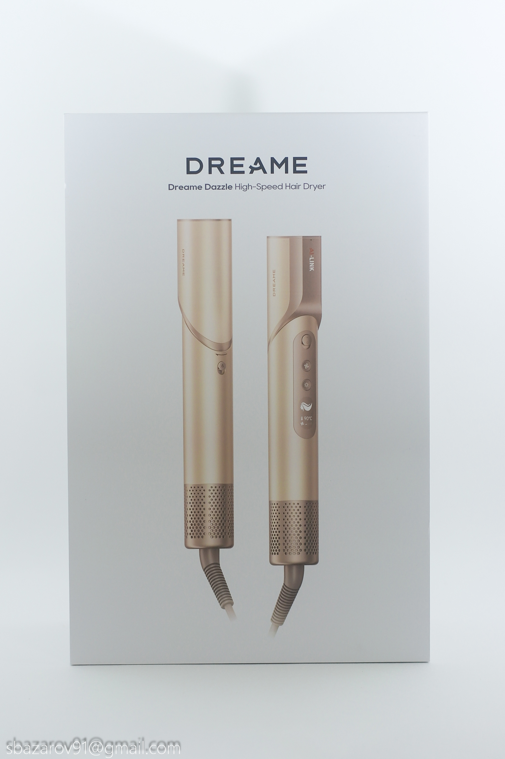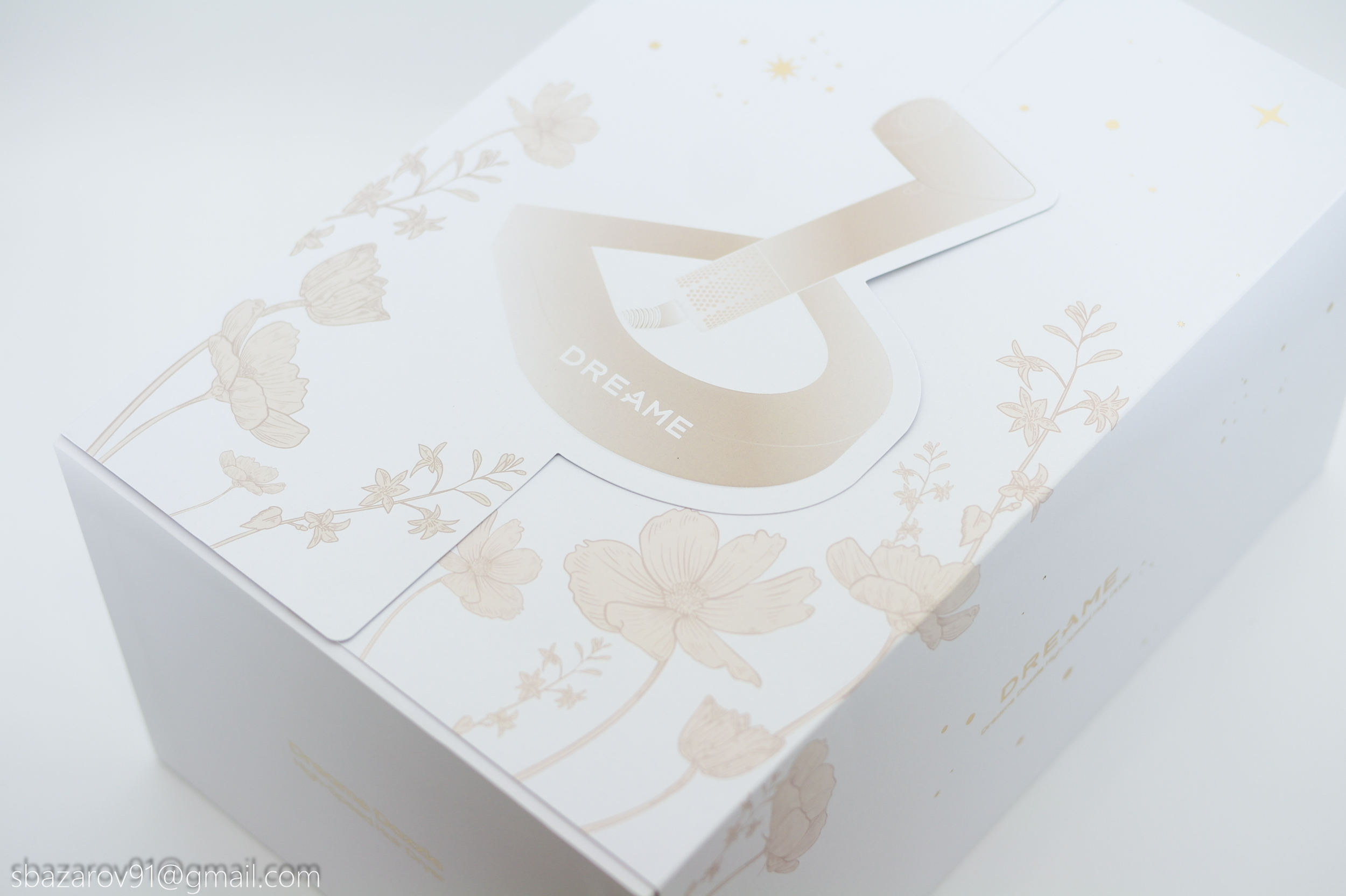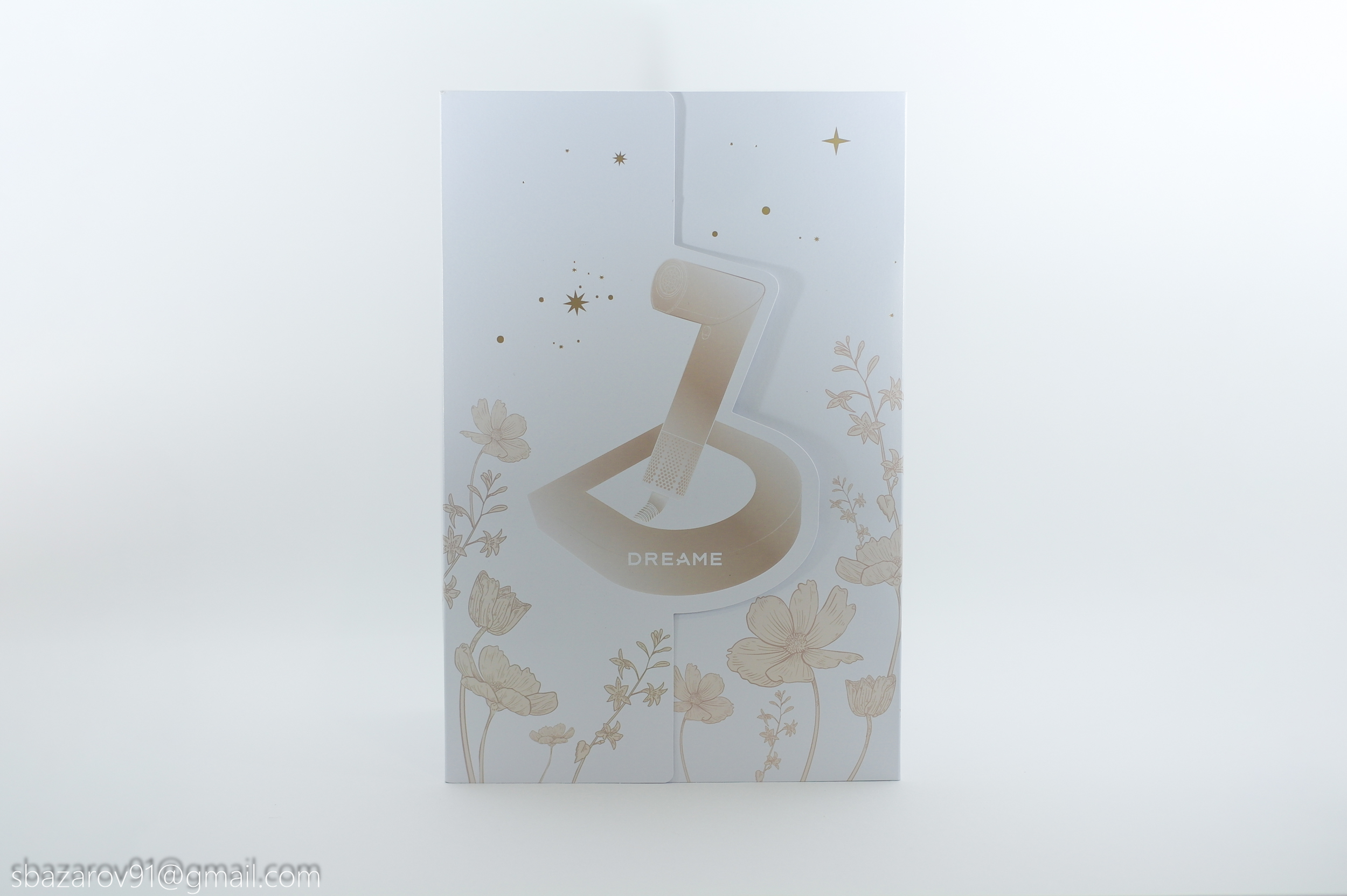 С точки зрения упаковки своего нового фена Dreame явно постарались. Базовая коробка имеет внешний вкладыш на магнитной застежке, дарить такой набор — одно удовольствие! В центре вкладыша заглавная буква бренда из которой выглядывает фен в сложенном состоянии.