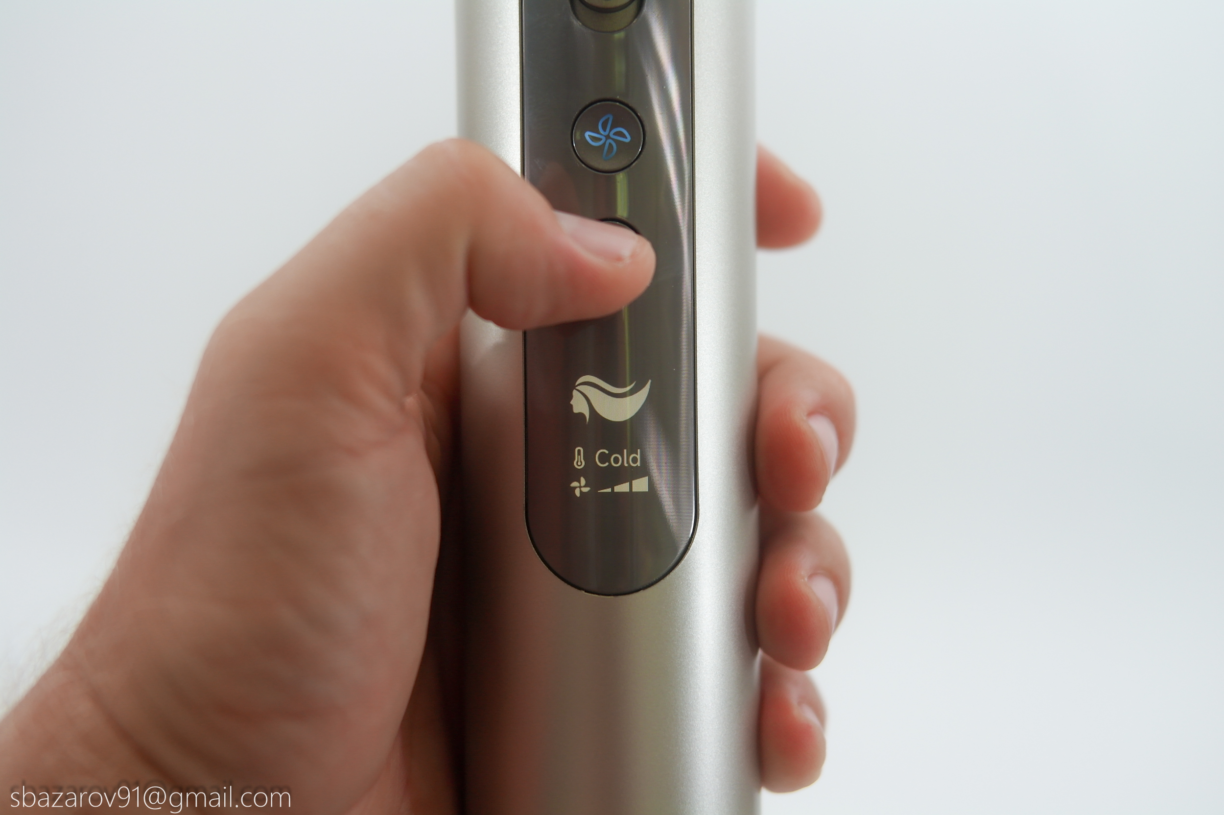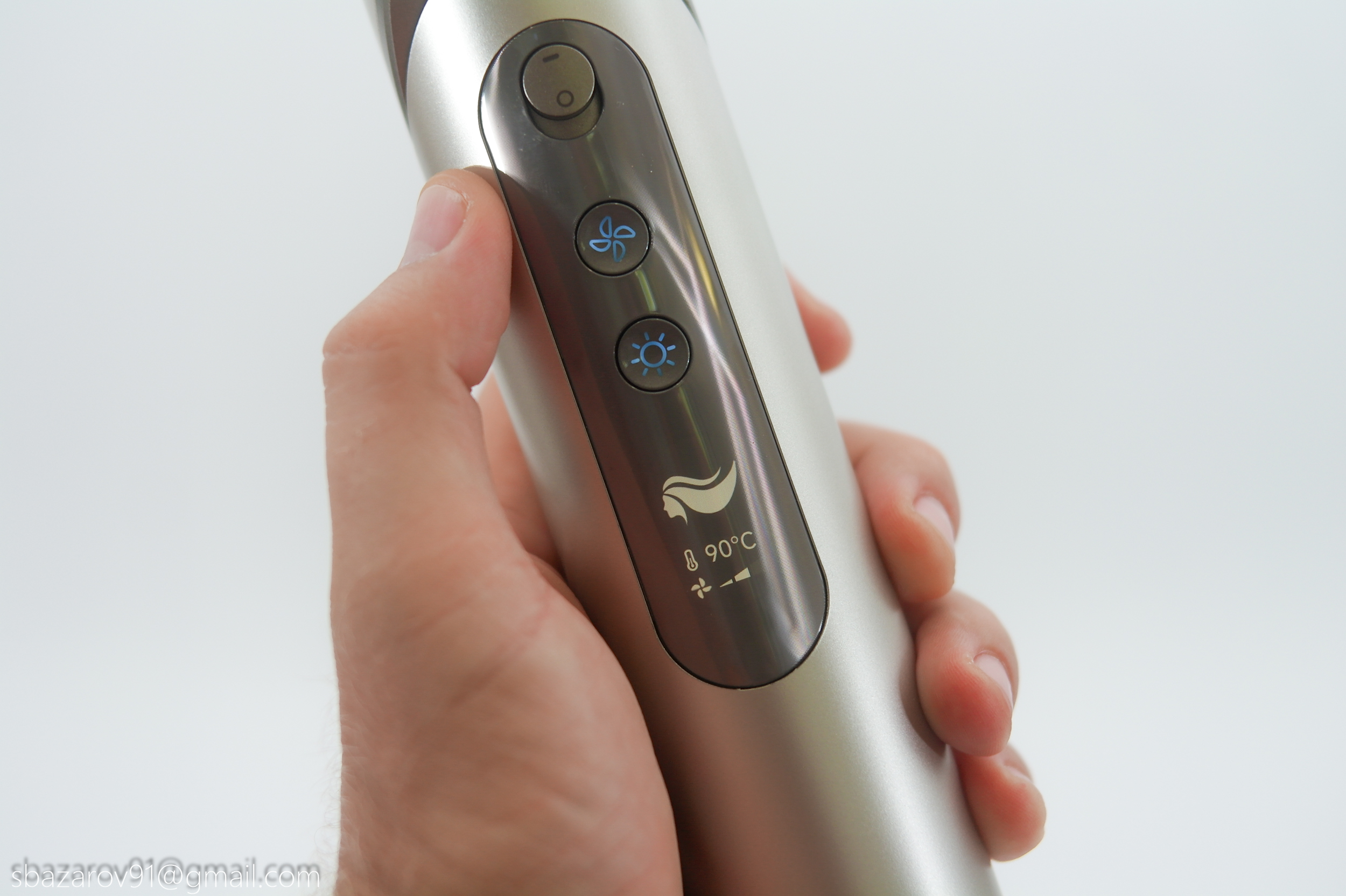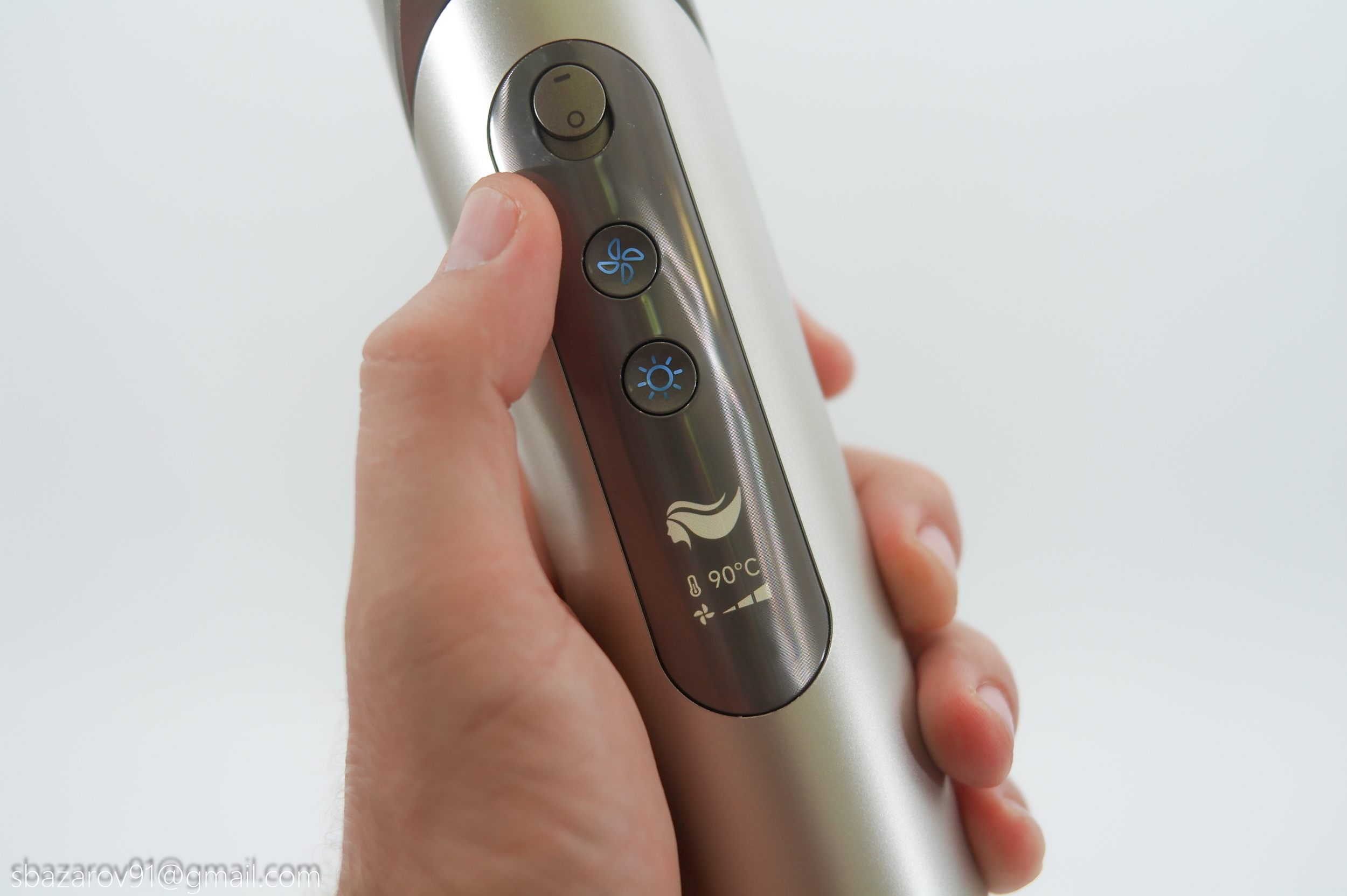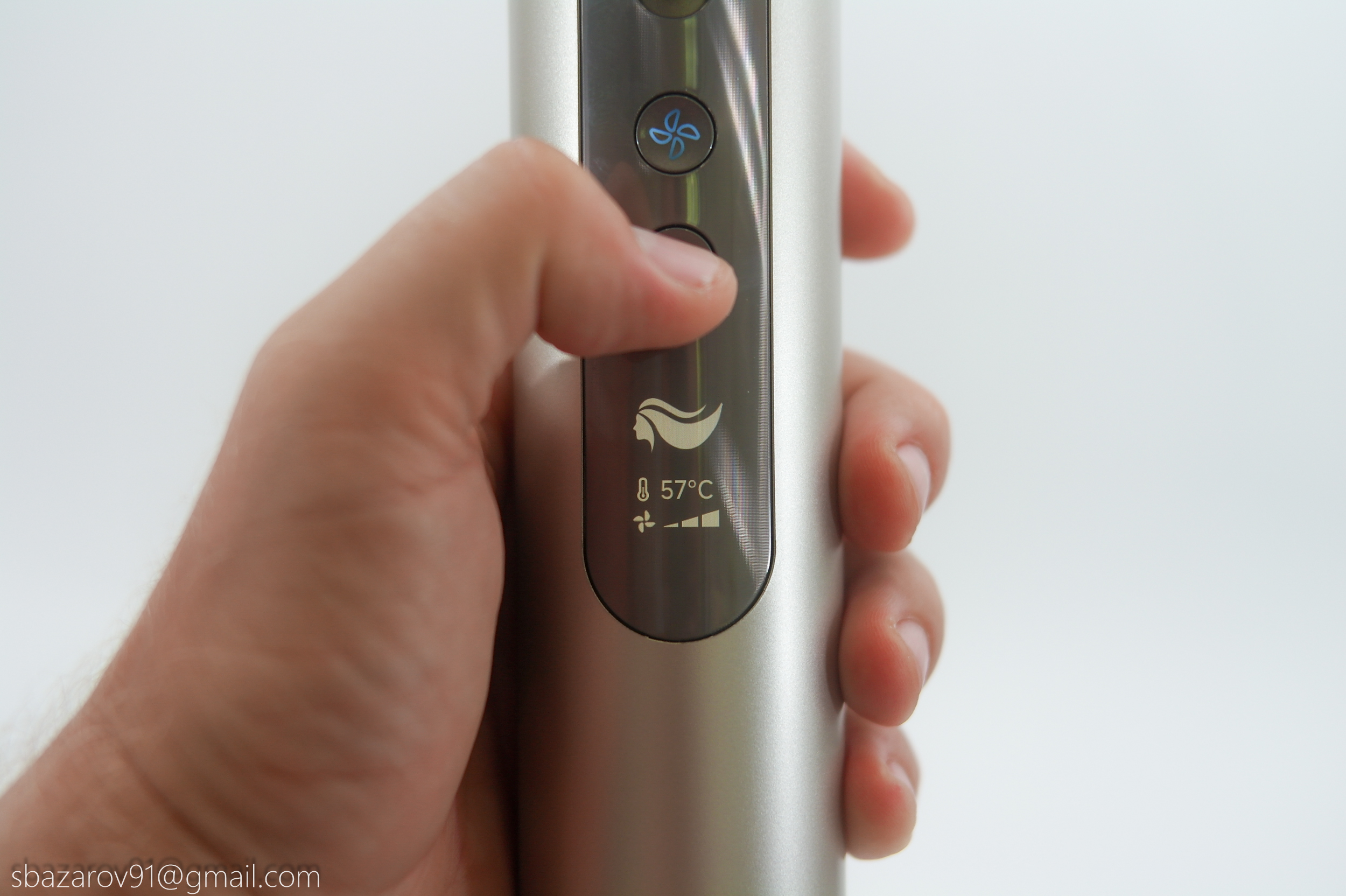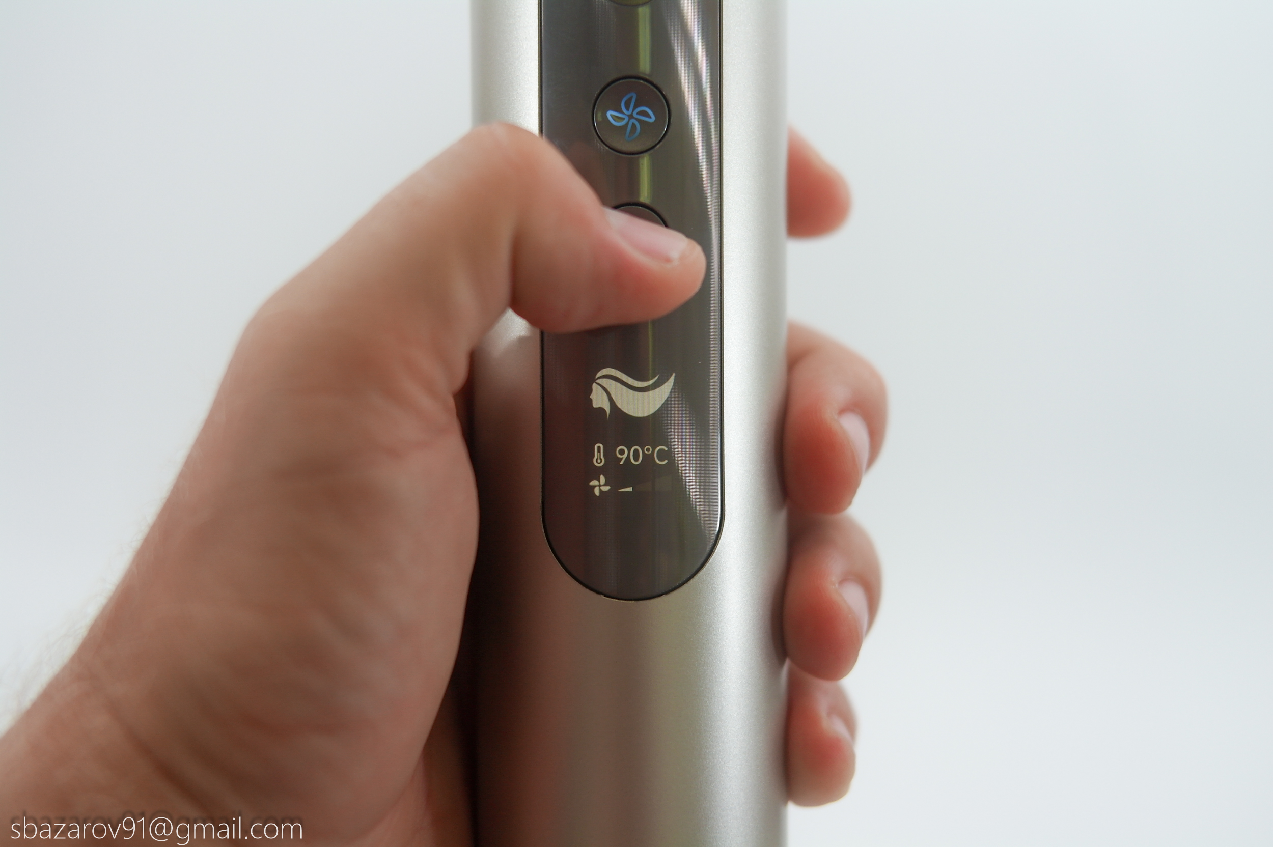 Основное неудобство со стайлерами заключается в банальной сушке, приходится гнуть руку, чтобы направить поток воздуха на себя. Поэтому большинство производителей комплектуют стайлеры дополнительной насадкой, тем самым увеличивая габариты устройства и вызывающую давление на руку. В случае Dazzle была разработана поворотная конструкция, решающая эту проблему иным способом. Теперь, если требуется сушка, достаточно повернуть верхнюю часть фена в сторону пользователя, и тогда Dazzle примет привычный вид классического фена.