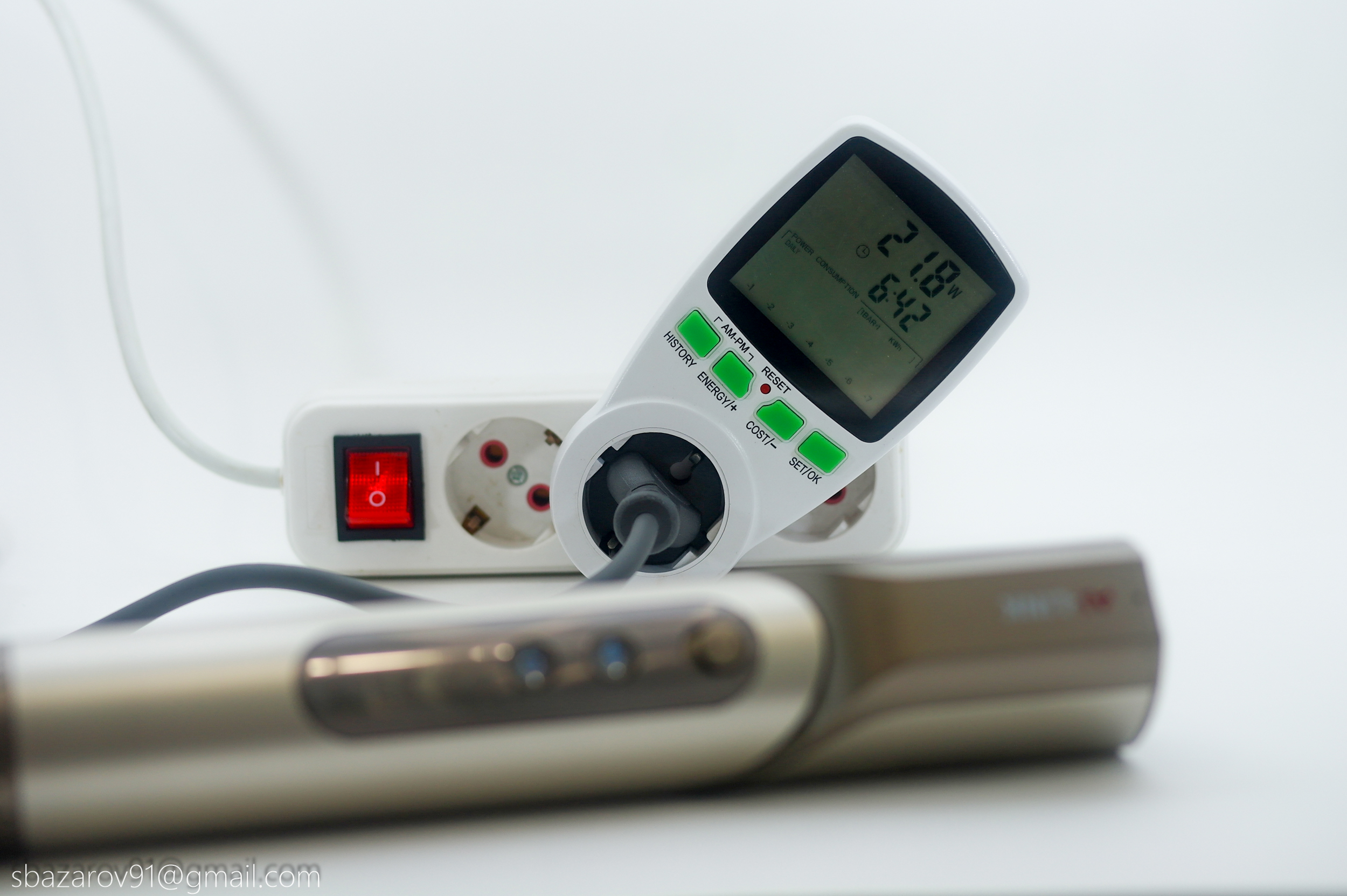 Давайте проверим, сколько мощности устройство действительно потребляет. Измерять этот показатель будем с помощью ваттметра, после чего добавим его в сводную таблицу, чтобы вы могли наглядно сравнить Dazzle с другими мультистайлерами. Несмотря на то, что в названии у него значится «фен», на деле перед нами универсальный фен-мультистайлер, так что это стоит учитывать при сравнении. С появлением высокооборотистых BLDC-двигателей потребляемая мощность перестала быть ключевым критерием оценки фенов и стайлеров. Гораздо важнее стала эффективность устройства, поэтому в следующем разделе мы перейдем к самому главному — тестированию воздушного потока.
