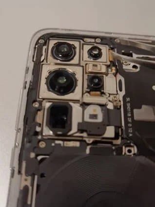 И сейчас у нас есть возможность взглянуть на то, как выглядит его впечатляющая камера без крышки. Для сравнения мы разместили рядом и аналогичное фото модели P40 Pro, которая в рейтинге DxOMark занимает первое место.
