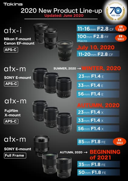 Представив объектив Tokina atx-i 11-20mm F2.8 CF для зеркальных камер Canon и Nikon формата APS-C, компания Tokina выполнила еще один пункт своего плана выпуска объективов на этот год. В связи с этим источник опубликовал обновленный план, в котором, помимо добавления даты начала продаж объектива Tokina atx-i 11-20mm F2.8 CF — 10 июля — есть и другие изменения.
